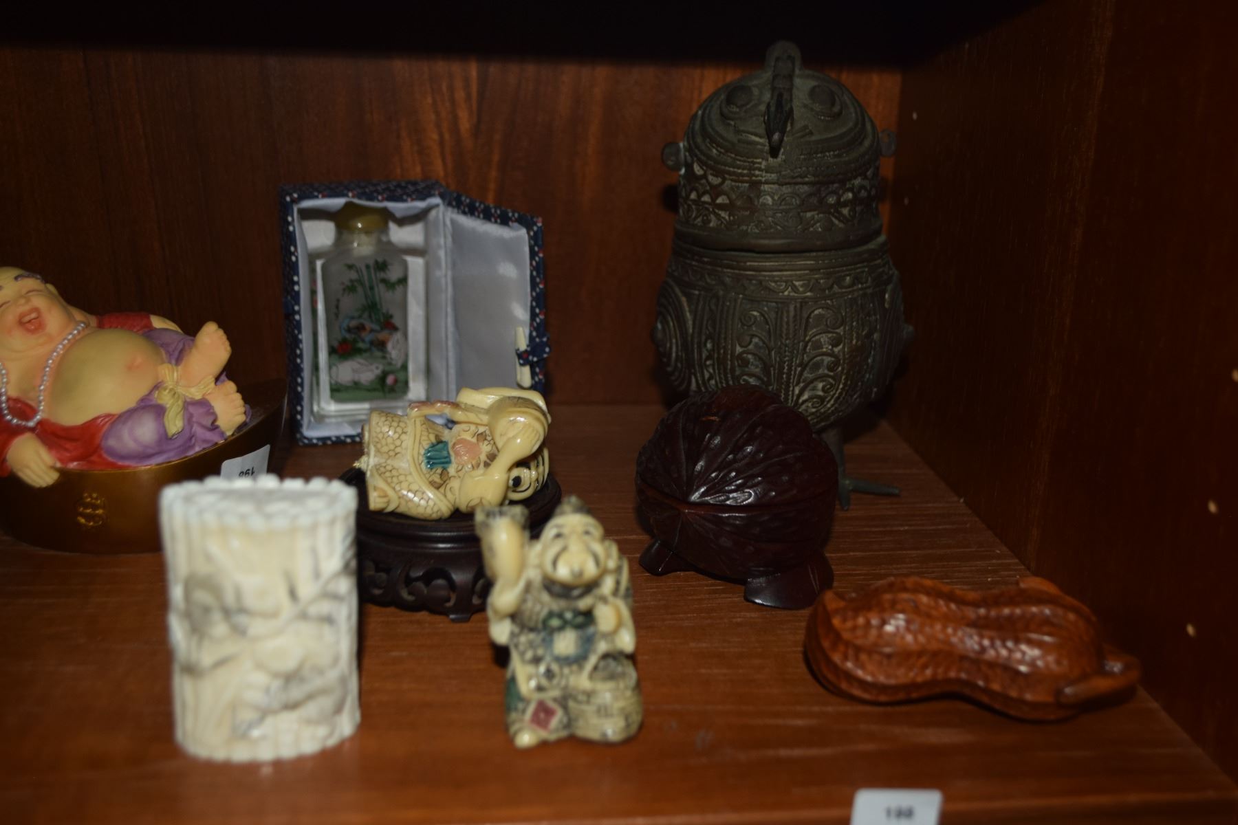 MIXED LOT: VASES, BOXES, FIGURES, SNUFF BOTTLE, ETC. (12 PCS)