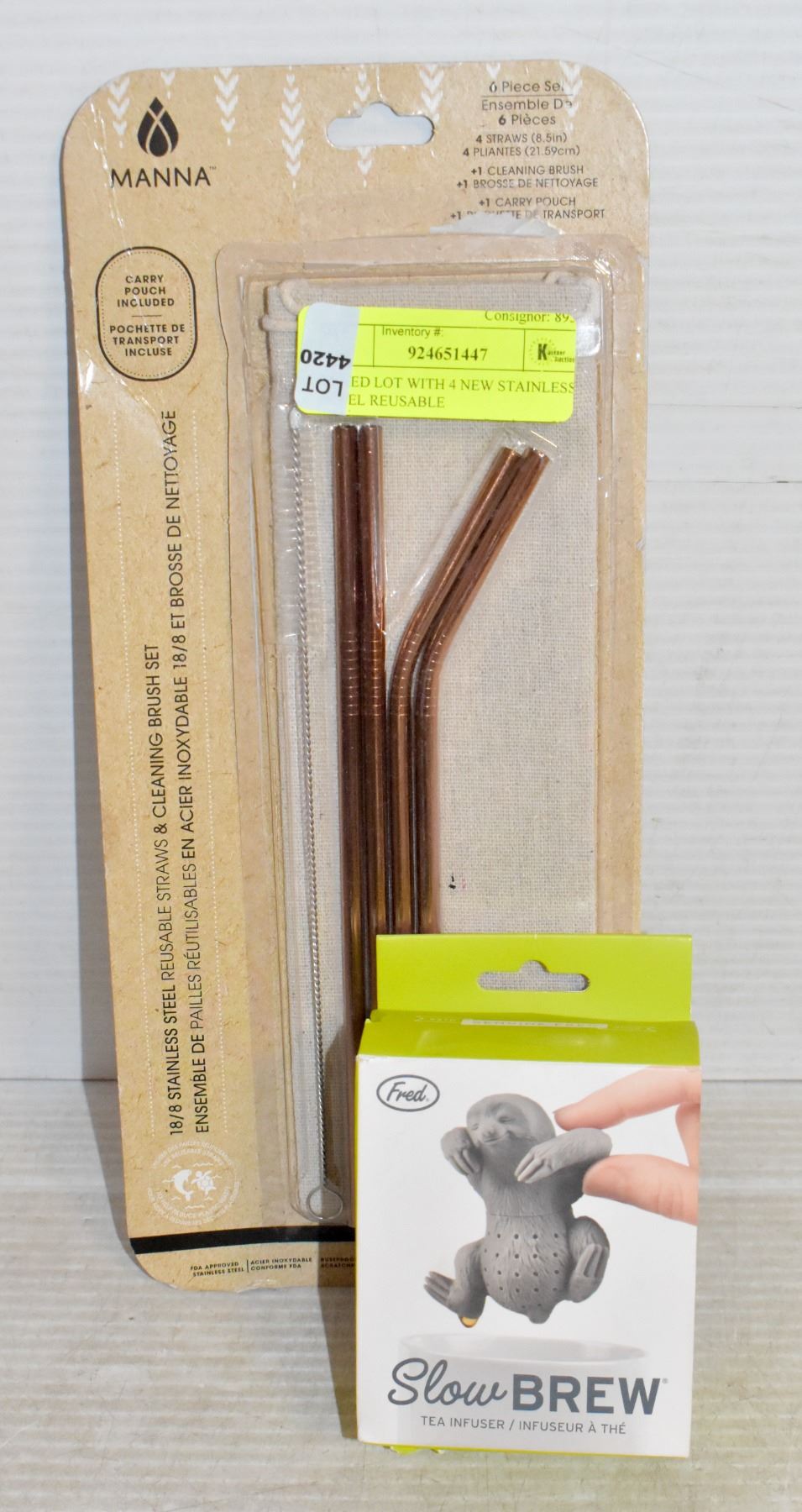 STRAWS WITH CARRYING BAG AND TEA INFUSER SLOW BREW SLOTH, HBC SES
