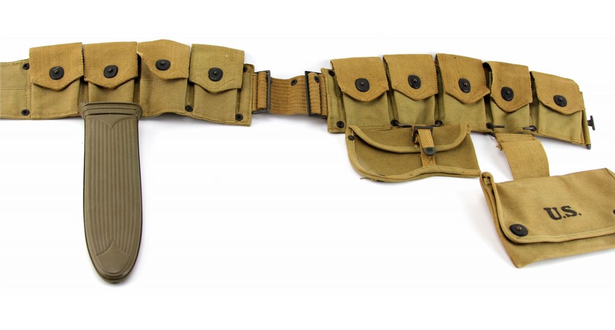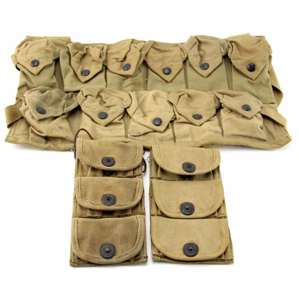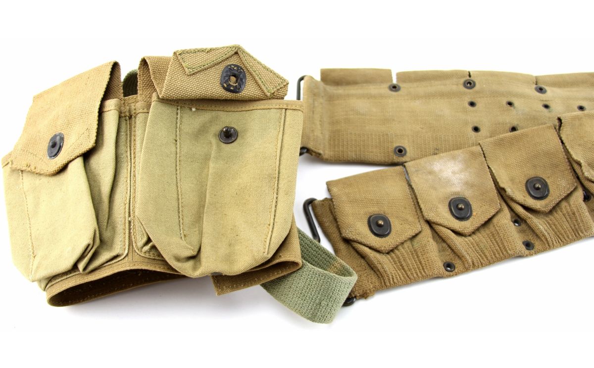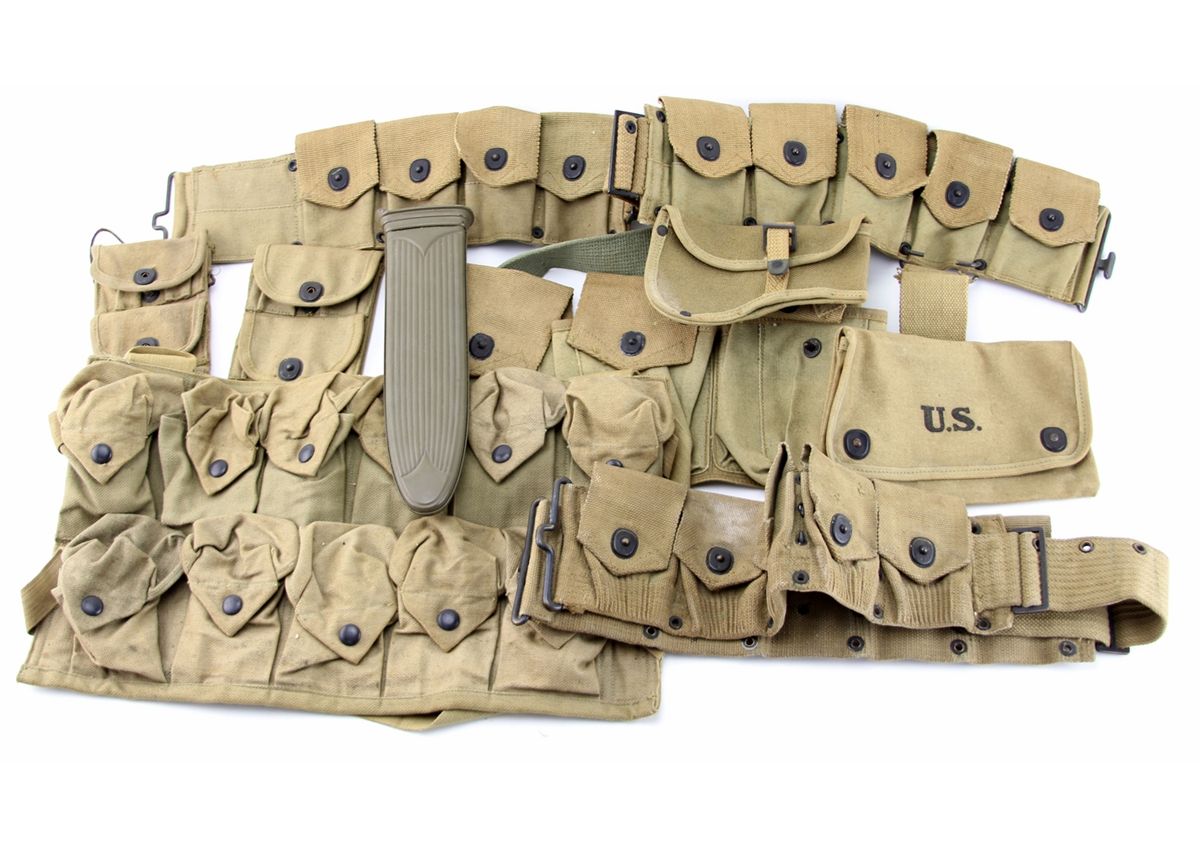 MIXED LOT WWI ERA US WEB GEAR Mixed lot of WWI era US canvas web gear. Mostly 1918 dated. Pouches, belts, bandoleers, and more. Country: US Condition: Various conditions, mostly good to better.