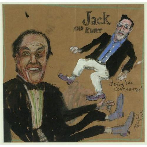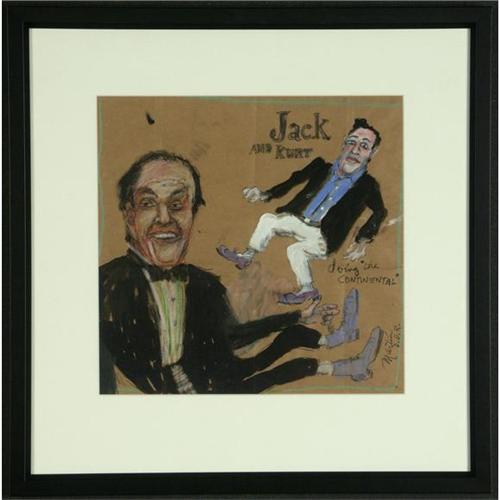 MIXED MEDIA ON PAPER, James Martin (1928-), WA. ''Jack & Kurt Doing the Continental''. Signed (including initials ''D.D.R.'' for Donald Duck Ranch) lower right. Titled in various locations throughout piece. Matted and placed in a simple black frame. More info. at the front desk. 12.75'' x 13''/ 20.5'' x 20.5'' framed.