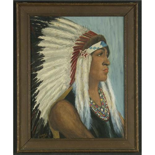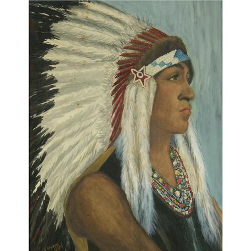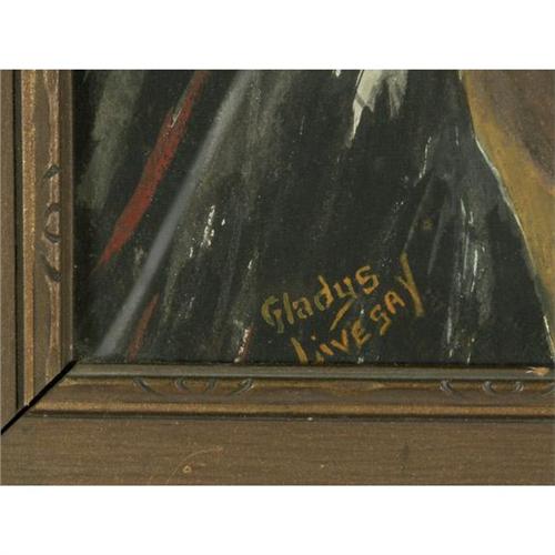 MIXED MEDIA 17 3/4'' x 13 3/4'', Gladys Livesay. An Indian Brave. Signed lower left. Placed in a period wood frame. Note condition to include dark marks upper left, as seen.