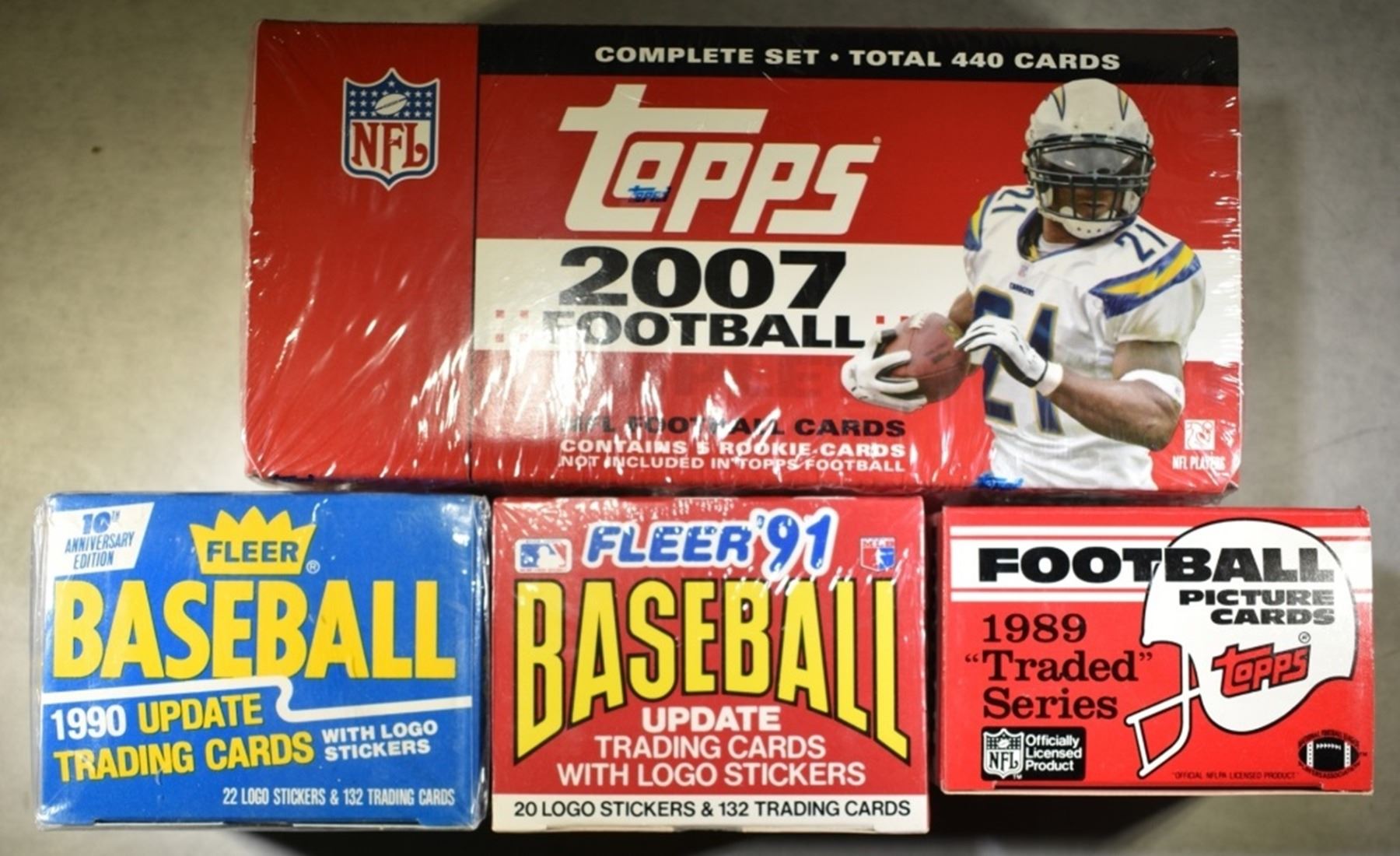 1989 TOPPS FOOTBALL "TRADED" SERIES- MISSING AIKMAN AND SANDERS, 1990 & 1991 FLEER BASEBAL CARD SETS ESTIMATE $45 - $55.