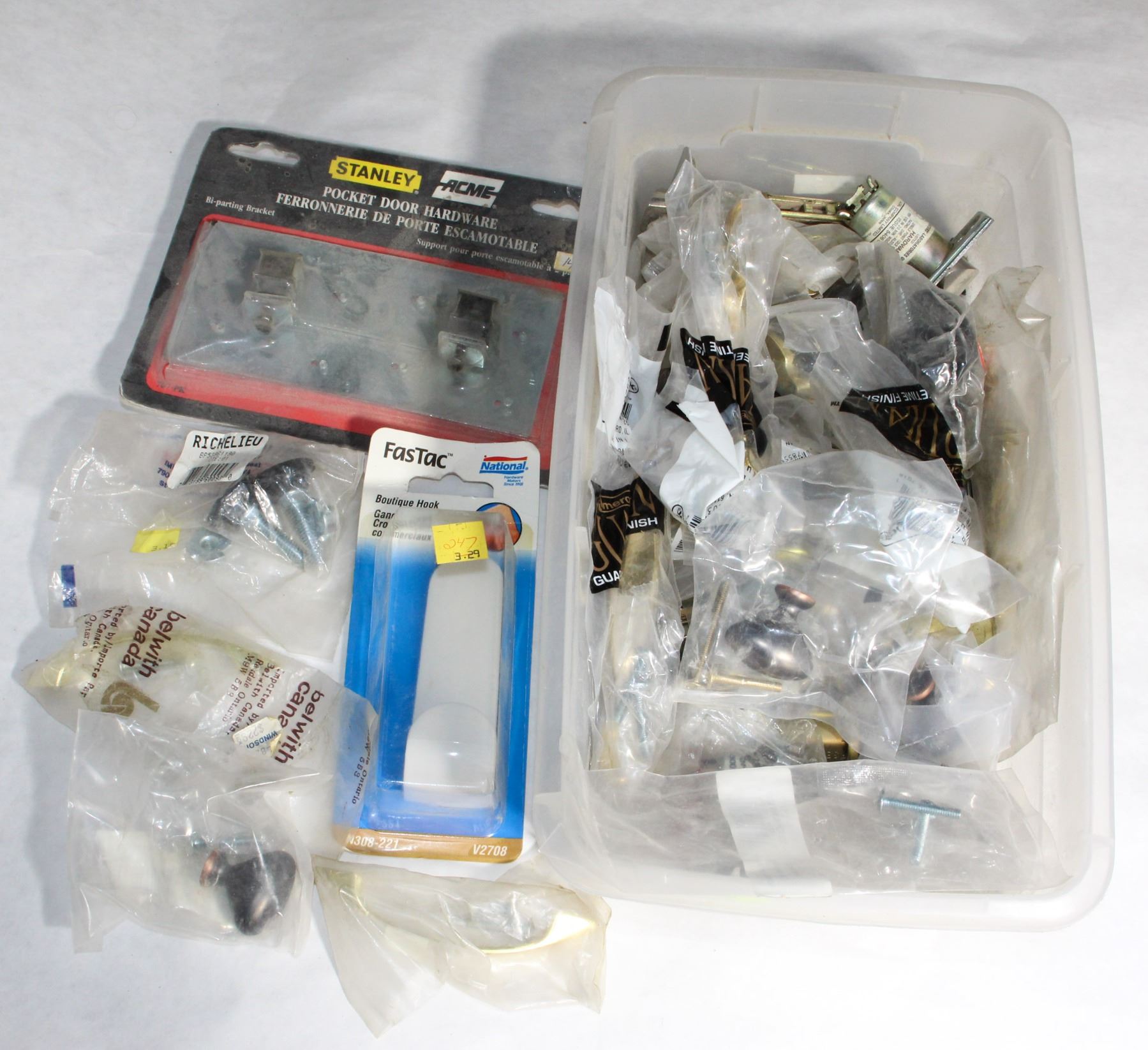 MIXED TRAY OF CABINET KNOBS, PULLS, AND MORE