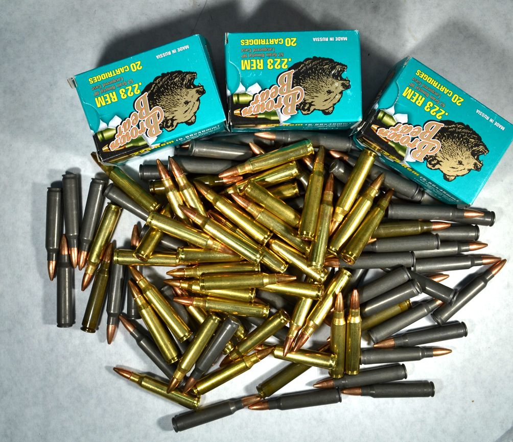 MIXTURE OF .223 AMMO: ( 40 ) PMC BRASS . 65 WOLF STEEL 60 HP STEEL, ALL 55 GRNS