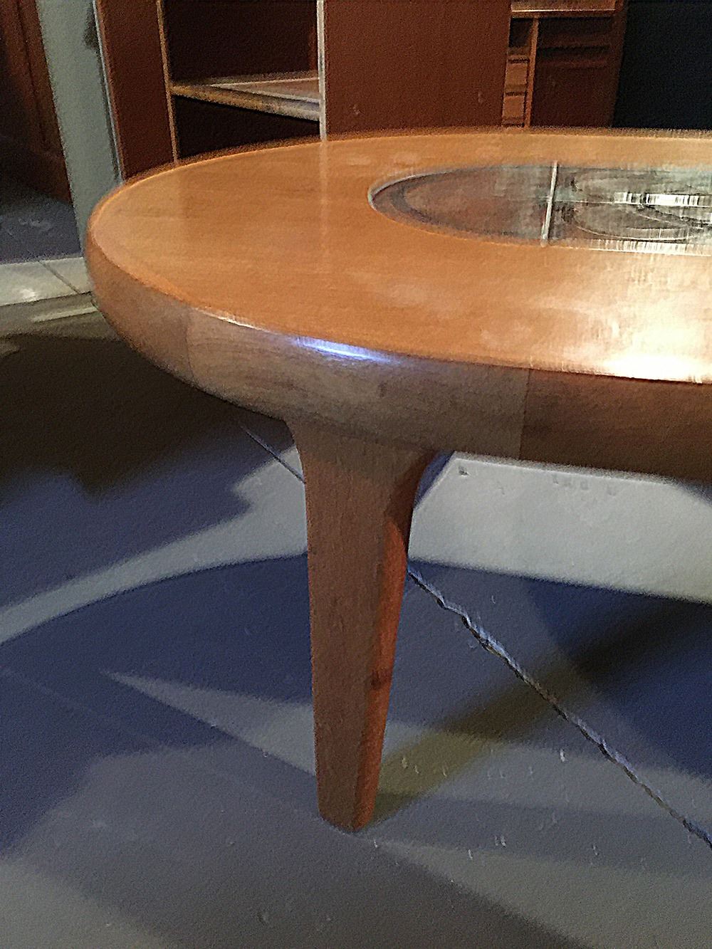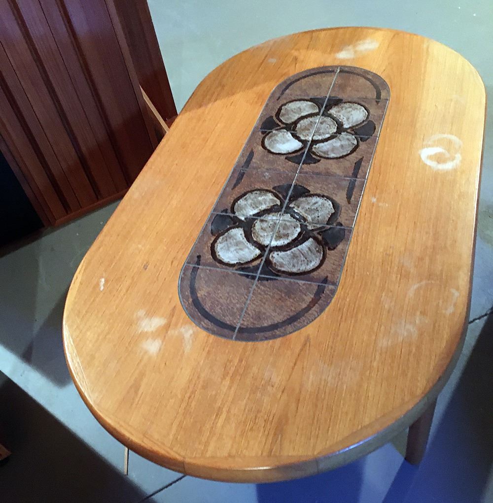 Mid Century Danish oval coffee table measures approx. 29 inches x 54.5 inches x 16 inches