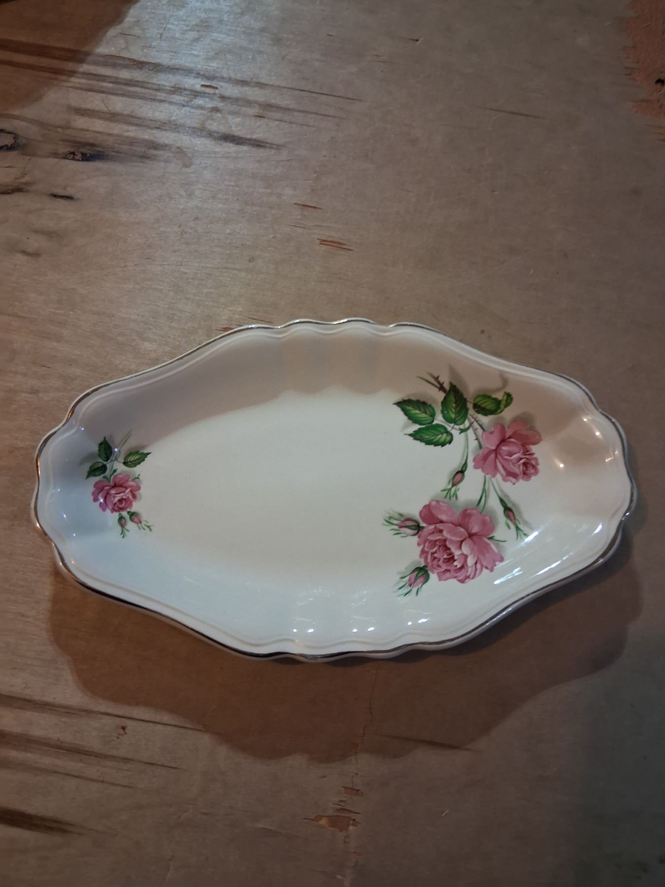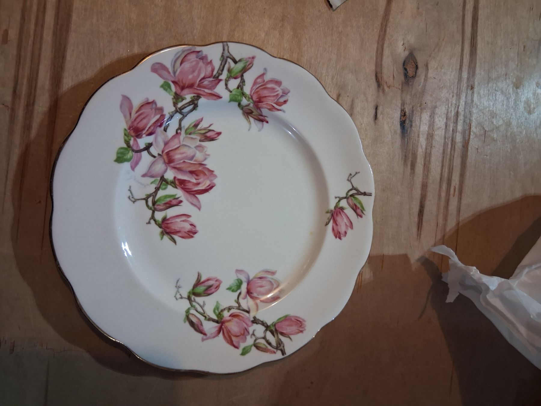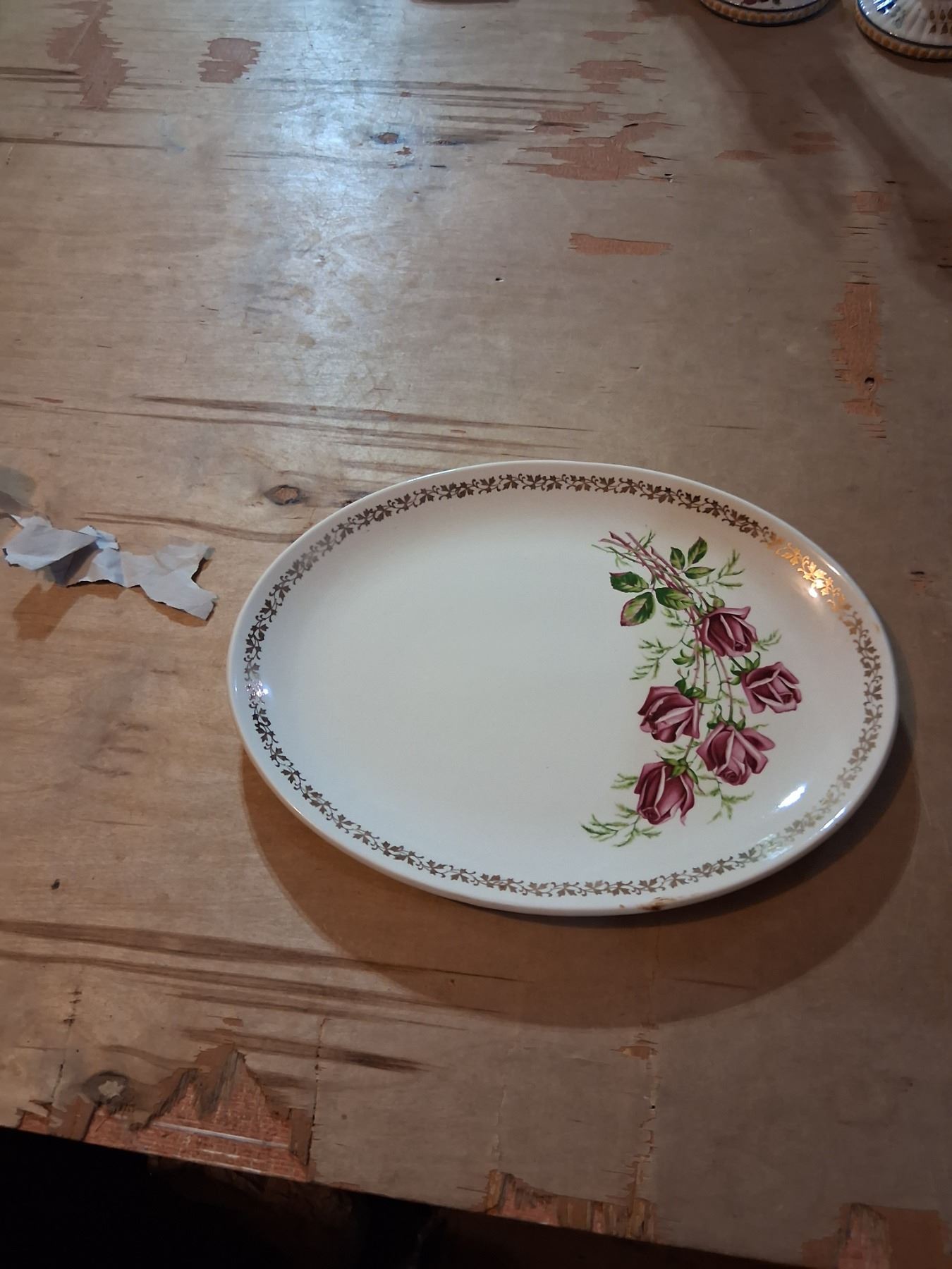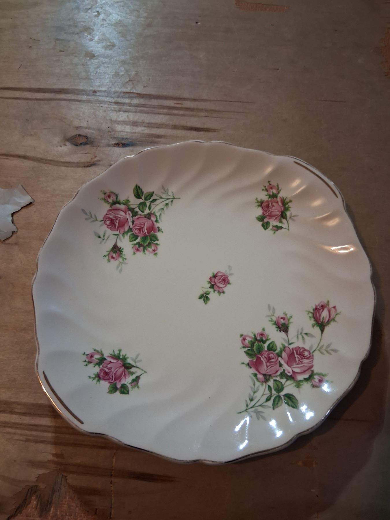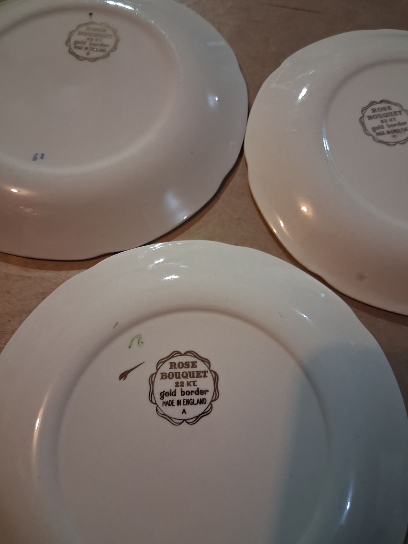 3ea small plates rose bouquet, 10ea pieces of J & G Meakin bone china, 2ea milk glass bowls