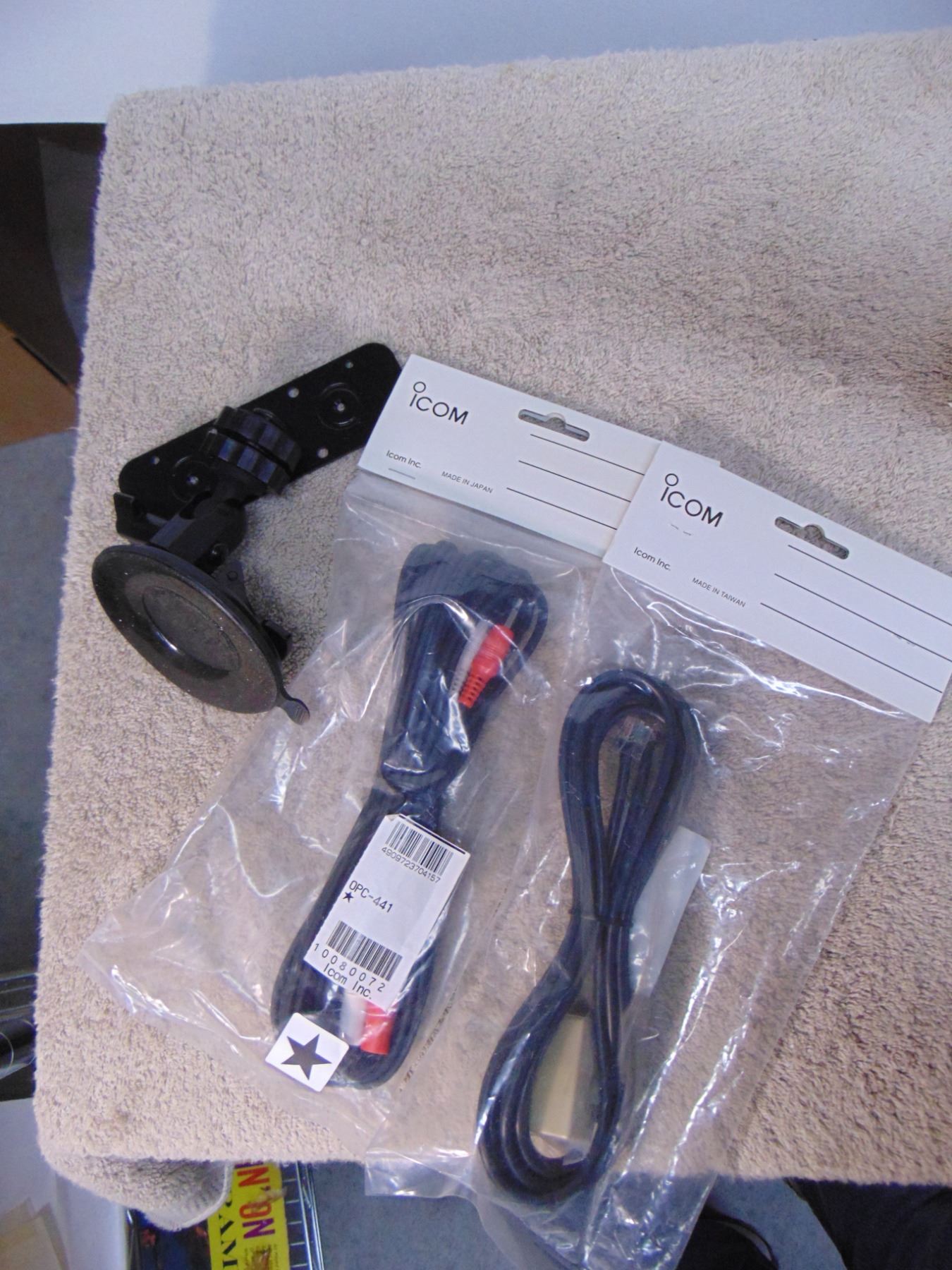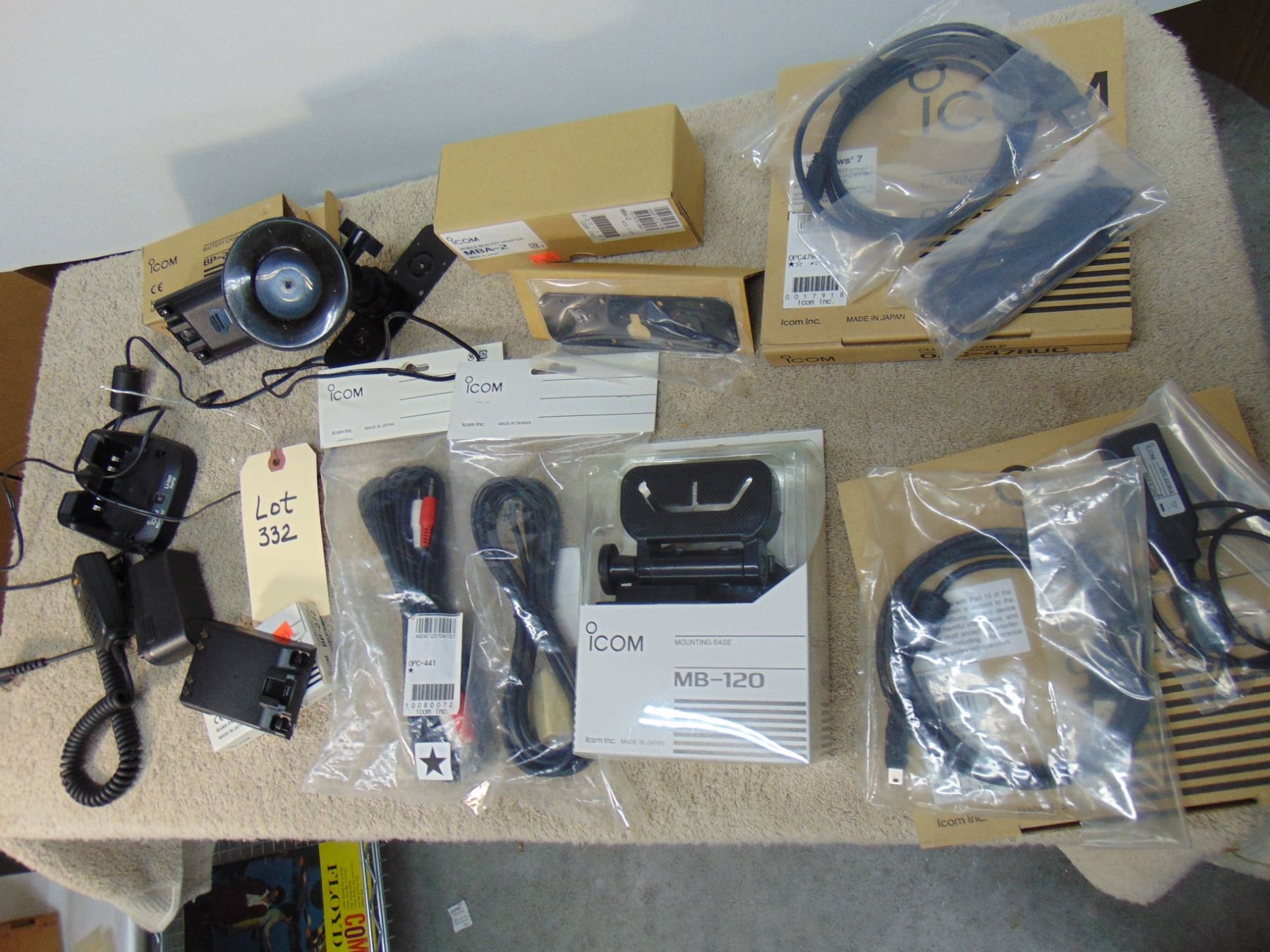 Flat of ICOM accessories; mostly NIB
