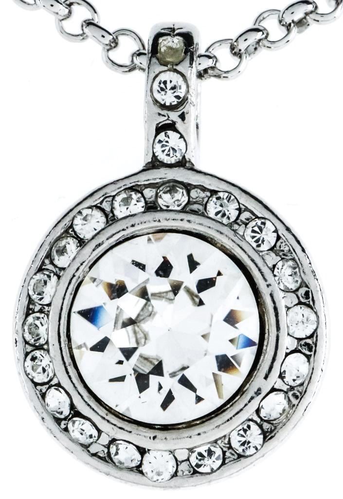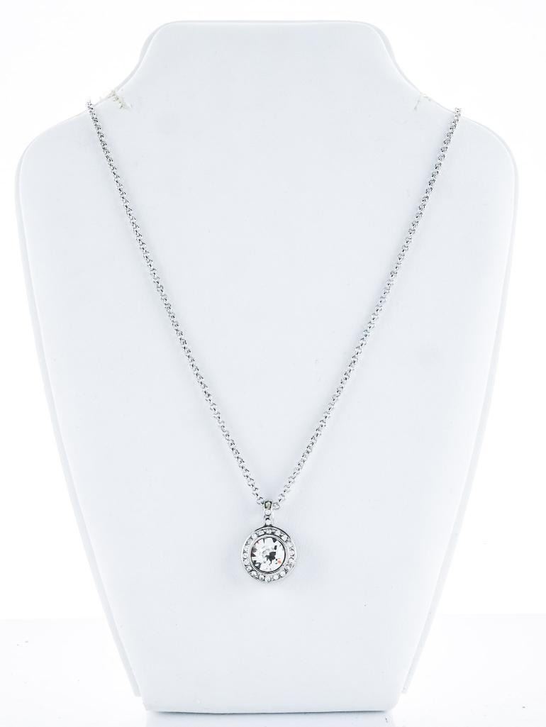 MM designer Fancy Silver Solitaire Necklace w Swarovski Elements, Heart Clasp, MM Signature Tag