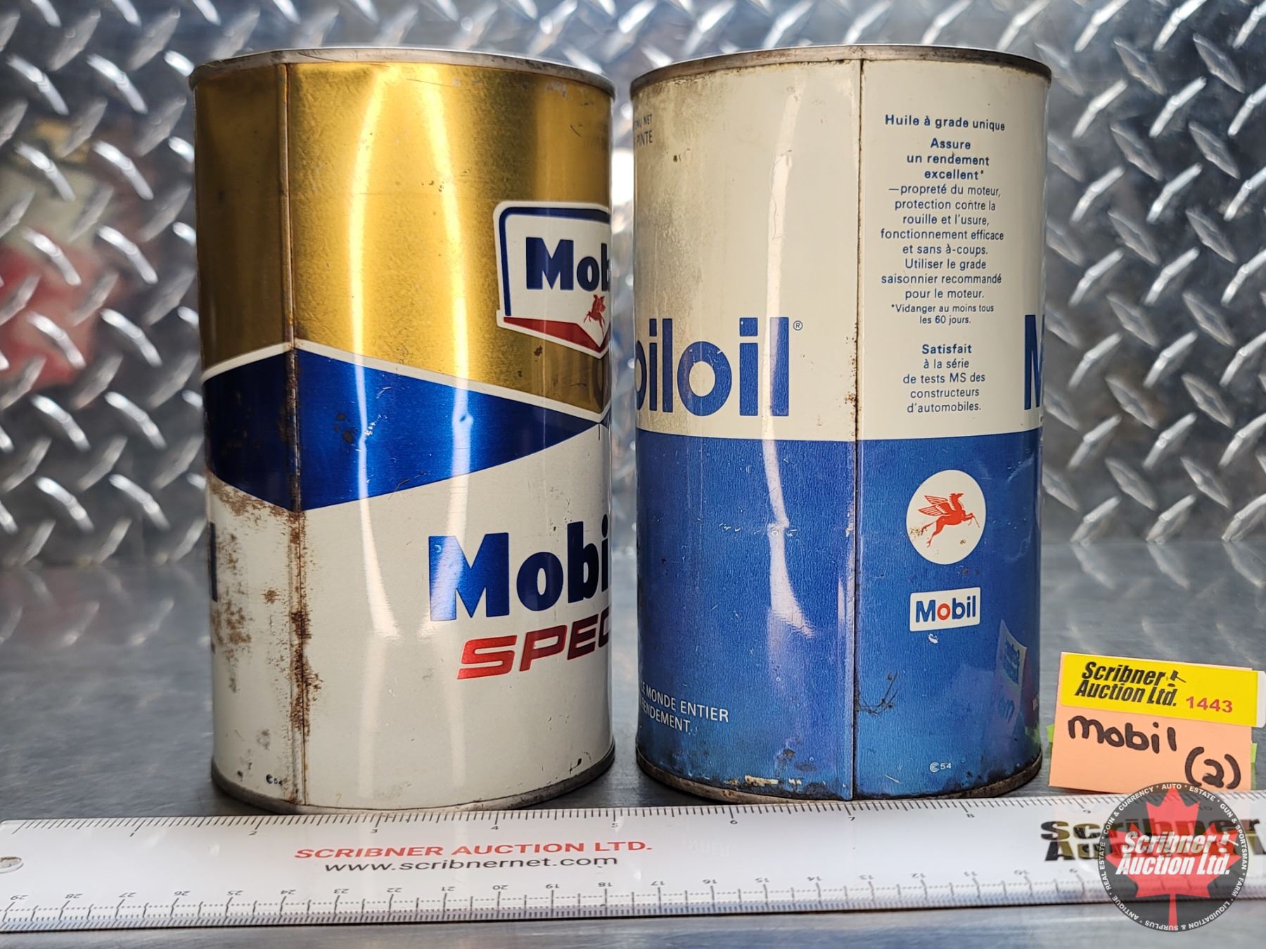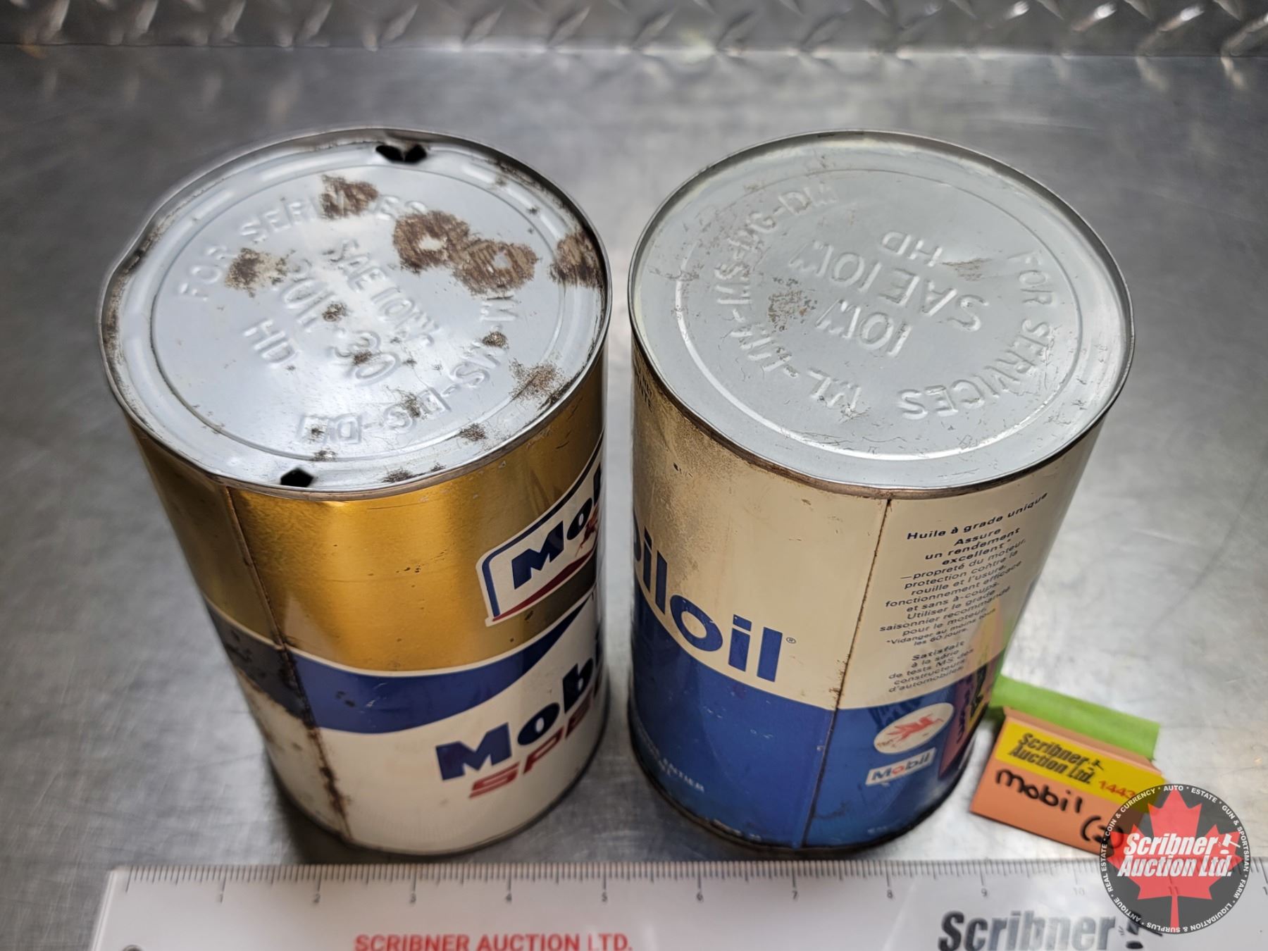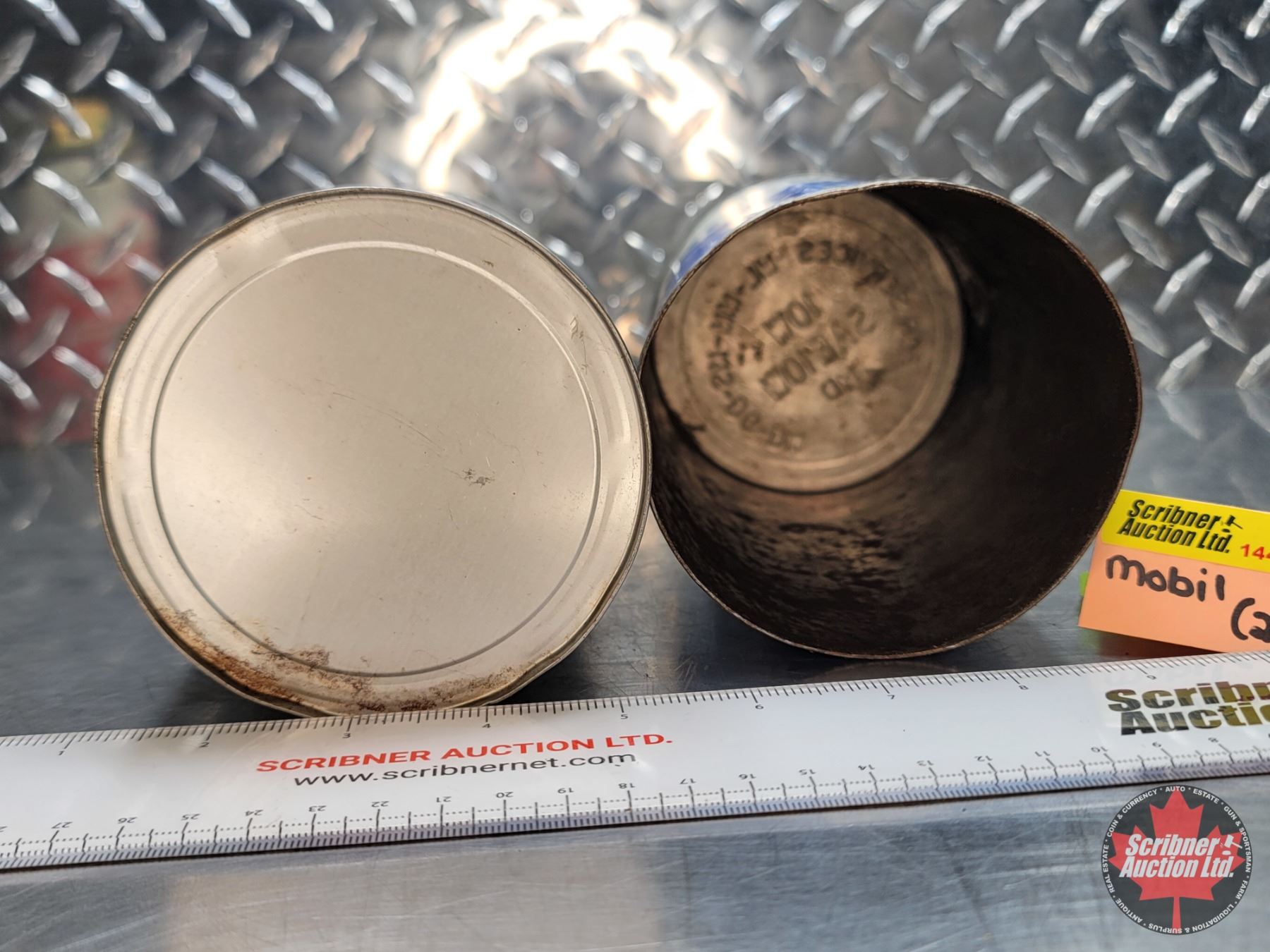 MOBIL OIL TINS (2) : Special & Regular (6-1/2"H x 4"Dia) (SEE PICS!)
