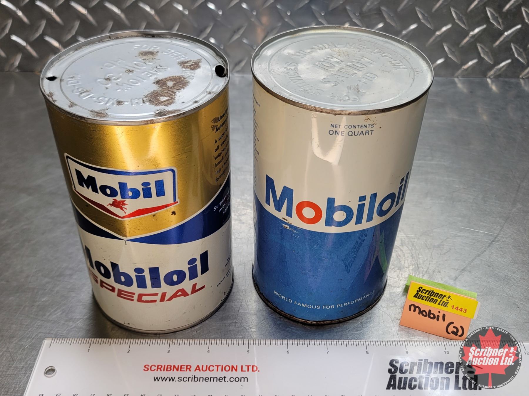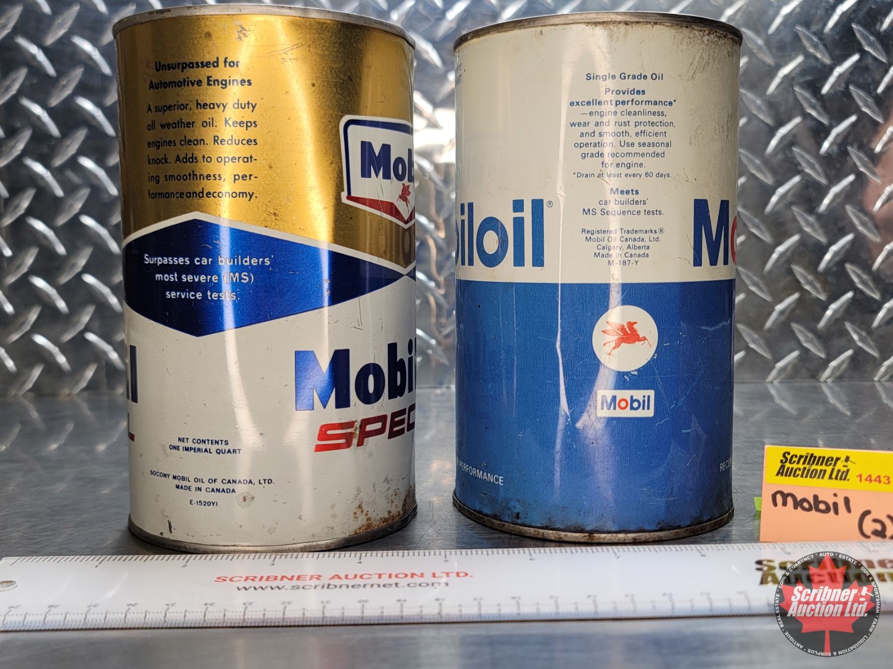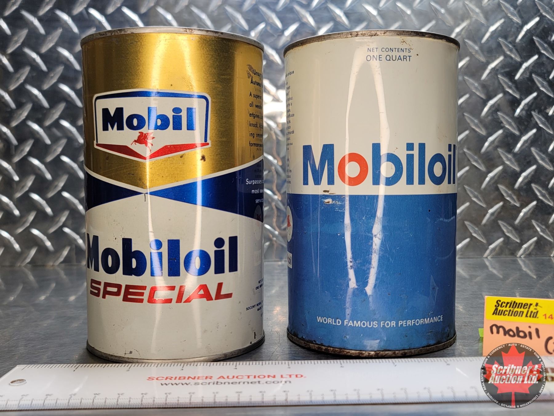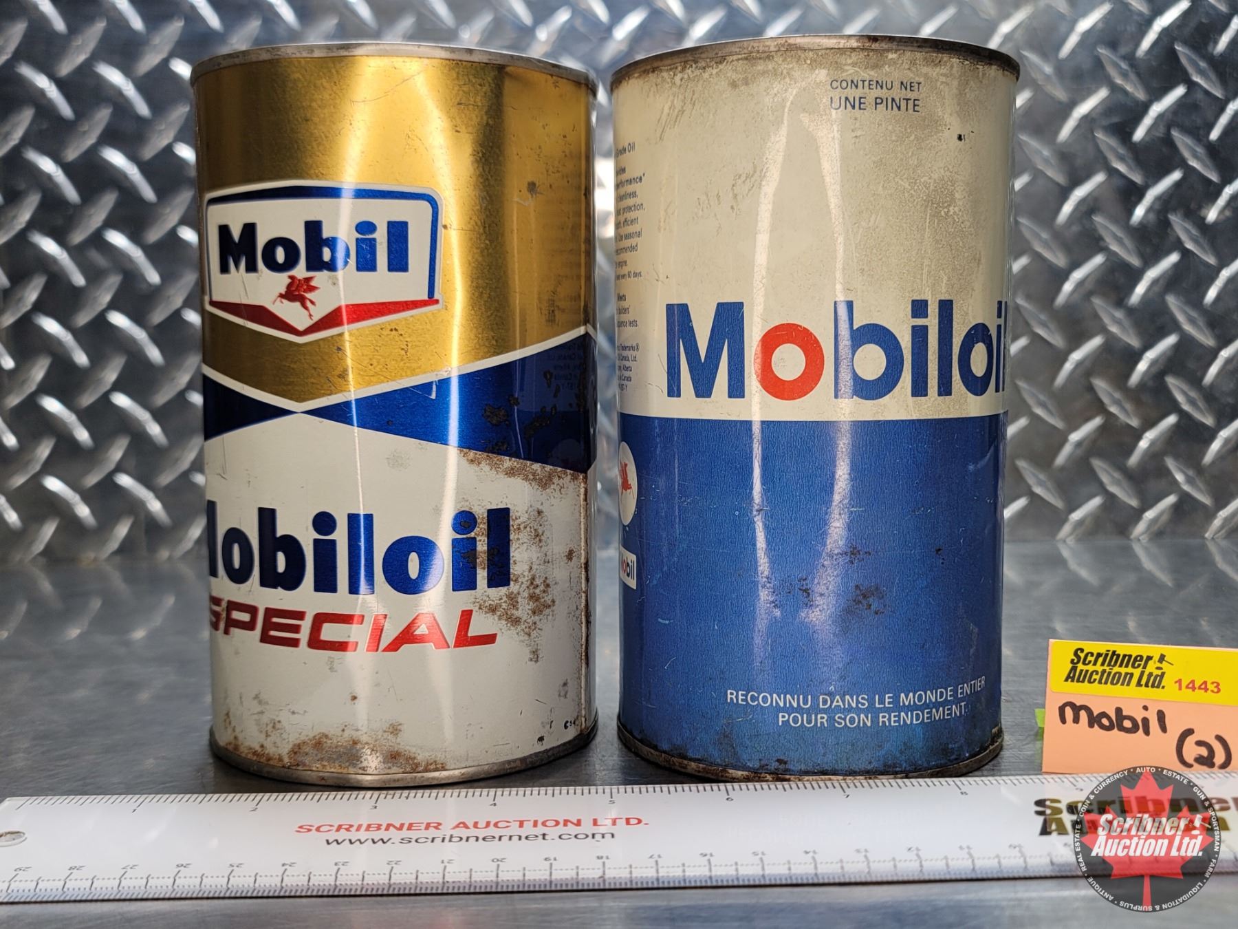 MOBIL OIL TINS (2) : Special & Regular (6-1/2"H x 4"Dia) (SEE PICS!)