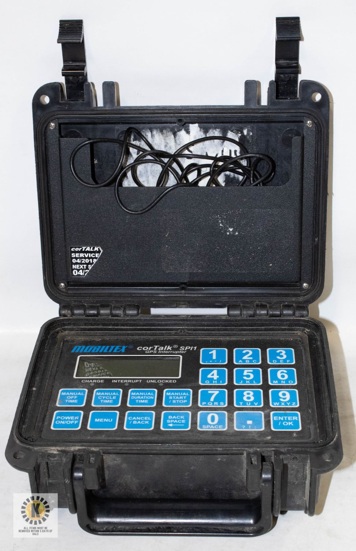 IN CASE - POWERFUL INTERRUPTION CONTROLLER FOR USE WITH CATHODIC PROTECTION RECTIFIERS, PRECISE TIME, ACCURACY, REPEATABILITY WITH GPS **ALL ITEMS MUST BE REMOVED BY 5PM SATURDAY, APRIL 3RD 2025. ALL REMAINING ITEMS WILL BE SUBJECT TO A $6.00 PER DAY STORAGE CHARGE. ANY ITEMS REMAINING AFTER MONDAY, MAY 19TH 2025 WILL BE CONSIDERED FORFEITED. NO REFUNDS WILL BE ISSUED FOR FORFEITED ITEMS. TO SCHEDULE A PICK UP APPOINTMENT CLICK HERE