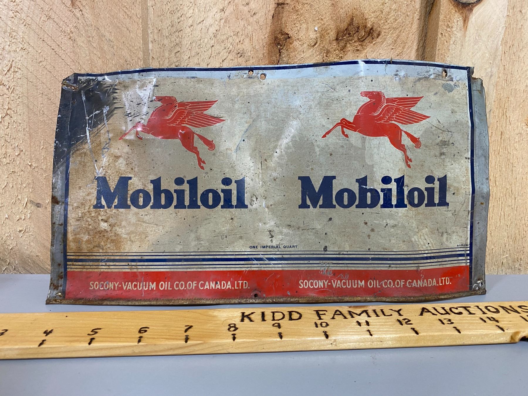 MOBILOIL FLATTENED OIL CAN SIGN