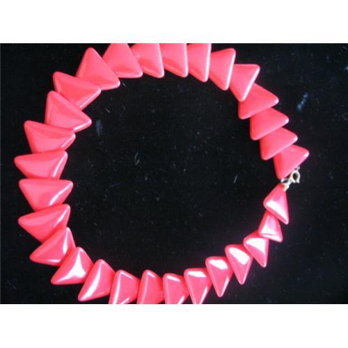 This 1960?S necklace is good fun! It is made of red plastic triangles that are linked. In excellent condition it measures 14" clasp to clasp. Very striking and unique! 35