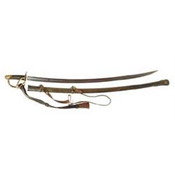 MODEL 1840 ENLISTED CAVALRY SABER. Well made reproduction. Blade marked “US 1863", complete with scabbard, reproduction sword knot and an original Indian War Rock Island Arsenal" patent sword hanger. 4-49714 JS36