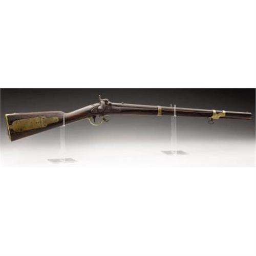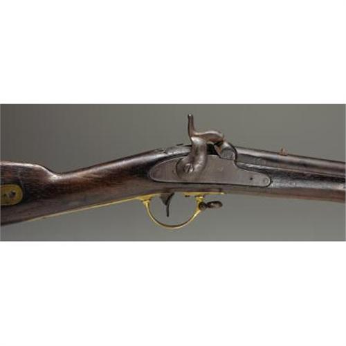 <B>MODEL 1841 U.S. PERCUSSION “MISSISSIPPI RIFLE".</B></I> Lock plate marked “E. Whitney, U.S.”, dated 1849. 28 ¾” barrel in .54 caliber. Brass furniture with ‘U.S.’ stamp on top of butt plate. Functioning action. <BR><BR><B>Condition: </B></I>Barrel shortened to length noted during period of use with front sight added. All metal surfaces are crusty and black in color. Brass rear barrel band, triggerplate, lock escutcheon and butt plate all have a lovely old patina. Triggerguard and front barrel band are modern replacements. Sling swivels are modern as well. Old break at wrist on stock that has been repaired. Stock shows numerous handling and ware dents, abrasions, etc.<BR><BR><b>Shipping:</b> Requires 3rd Party Shipping (<a target="_blank" href="http://www.heritageauctions.com/common/shipping.php">view shipping information</a>)