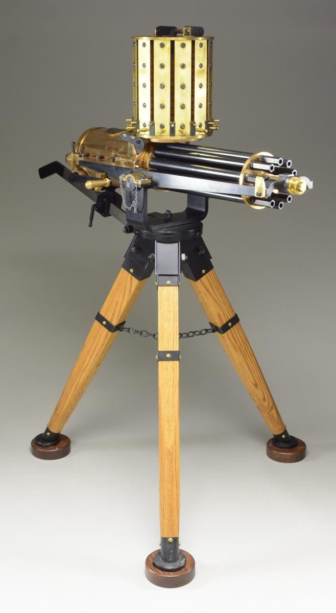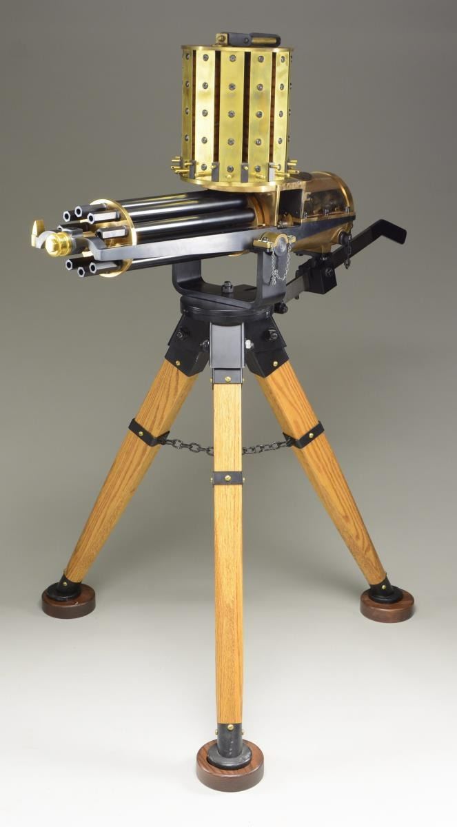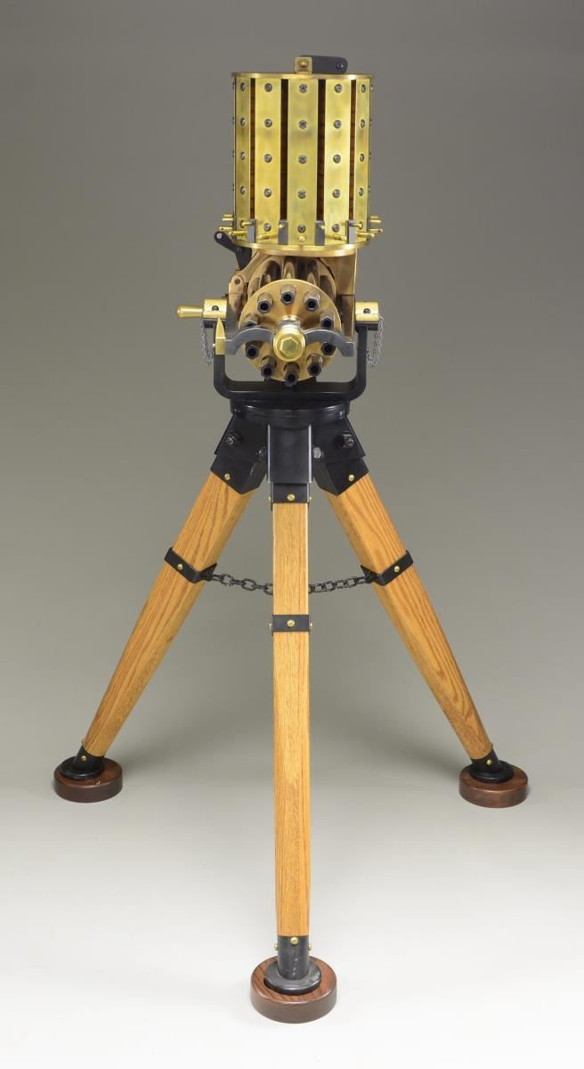 MODEL 1878 BRASS GATLING GUN ON TRIPOD WITH 3