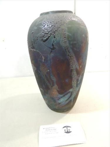 MODERN ART: ROUND TREE POTTERY ART CERAMIC VASE 13"H. TAG INCLUDES. AS SHOWN. VIEW PICTURE FOR DETAIL.