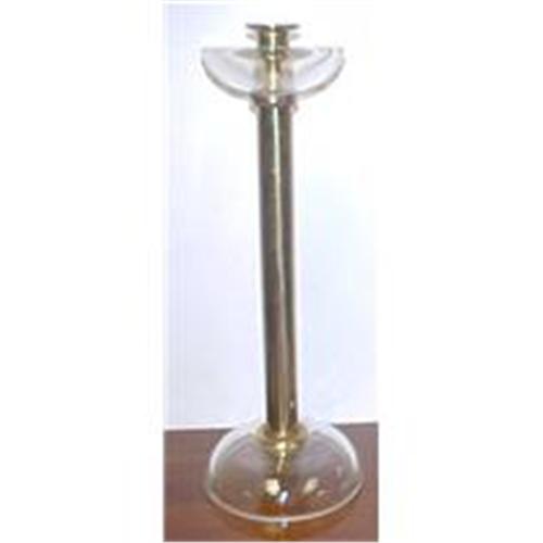 PAIR OF BRASS AND CRYSTAL CANDLESTICKS 14 IN HIGH GOOD COND.
