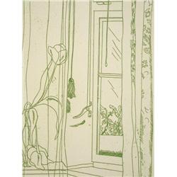 GUDRUN von LEITNER born 1940 (German) Fenster im Rehhagen / Window in Rehhagen Original Hand Signed and Numbered Color Etching Ti