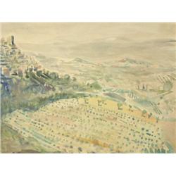 ROMAINE LORQUET (Lacoste) 20th Century artist Panorama View- 1958 Original Hand Signed and Dated Watercolor Painting Title : Pan