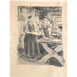 ALEXANDRE LUNOIS 1863-1916 (French) Working Maids Original Hand Signed and Numbered Lithograph Title : Working Maids. <br