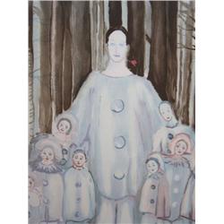 MARCEL MARCEAU Mime / Mimic Harlekin - Self Portrait Original Hand Signed Color Lithograph with Small Flower Drawing Title : Har