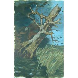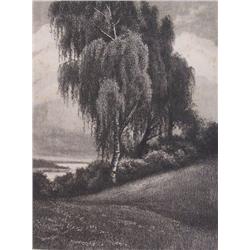 FRANTISEK KOBLIHA 1877-1962 (Czech) Lake View Original Hand Signed Woodcut Title : Lake View. Technique : Original Woodc