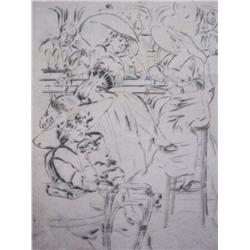 ALMERY LOBEL-RICHE 1880 - 1950 (French) Women in the Coffee-House Original Hand Signed Etching Title : Women in the Coffee-House