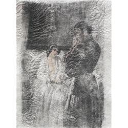 ALMERY LOBEL-RICHE 1880 - 1950 (French) Man and Woman Original Hand Signed Etching on thin leather/skin Title : Man and Woman.<
