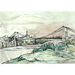 JULIUS WOLFGANG SCHULEIN 1881 - 1959 (German) Landscape - 1917 Original Hand Sigend and Dated Watercolor and Charcoal Drawing T