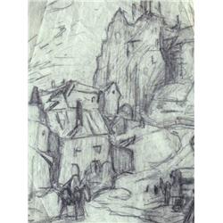 JULIUS WOLFGANG SCHULEIN 1881 - 1959 (German) Cityscape - 1917 Original Hand Sigend and dated Pencil Drawing Title : Cityscape
