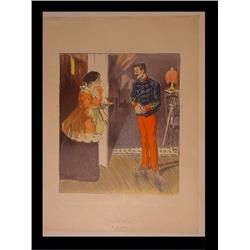 STEINLEN THEOPHILE ALEXANDRE Lausanne 1859 - 1923 Paris Hostess and Officer - Original Color Lithograph Title : Hostess and Off