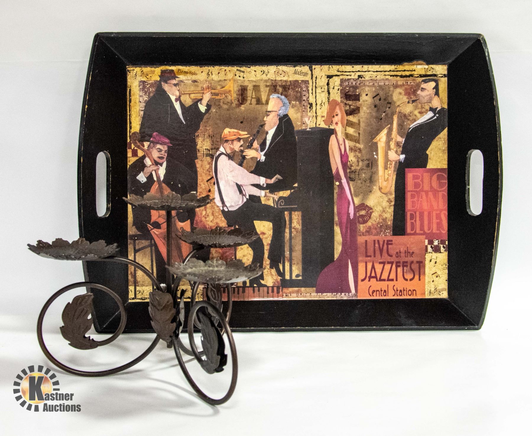 WOOD JAZZFEST SERVING TRAY AND PARTYLIGHT PILLAR CANDLE HOLDER **ALL ITEMS MUST BE REMOVED BY 5PM SATURDAY, APRIL 29TH 2023. ALL REMAINING ITEMS WILL BE SUBJECT TO A $6.00 PER DAY STORAGE CHARGE. ANY ITEMS REMAINING AFTER MONDAY, MAY 15TH, 2023 WILL BE CONSIDERED FORFEITED. NO REFUNDS WILL BE ISSUED FOR FORFEITED ITEMS. TO SCHEDULE A PICK UP APPOINTMENT CLICK HERE