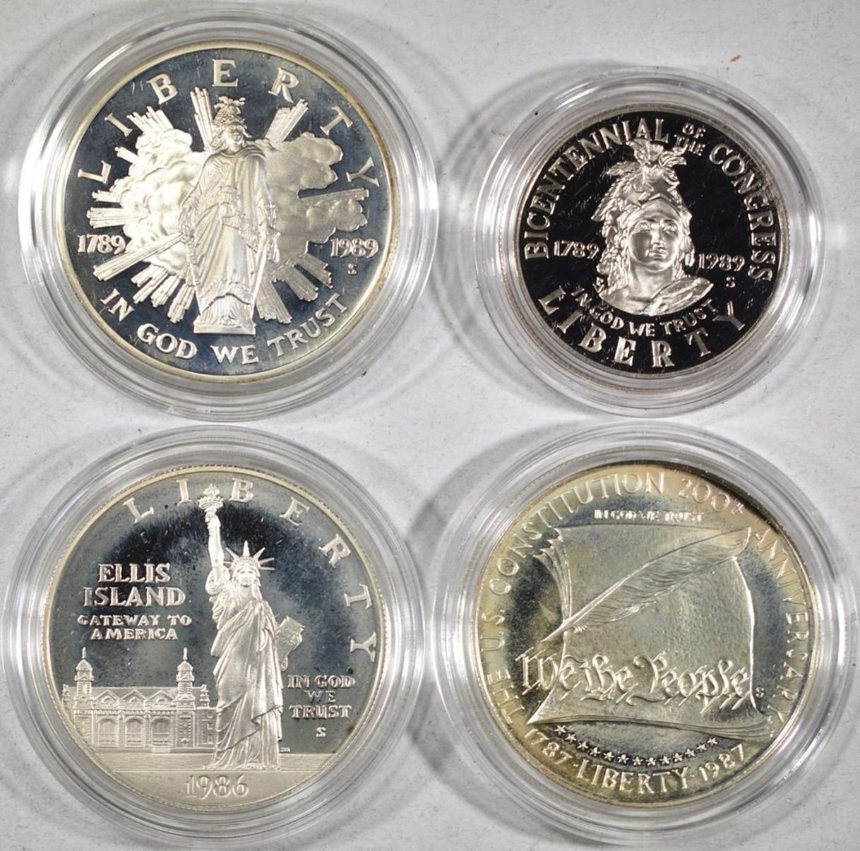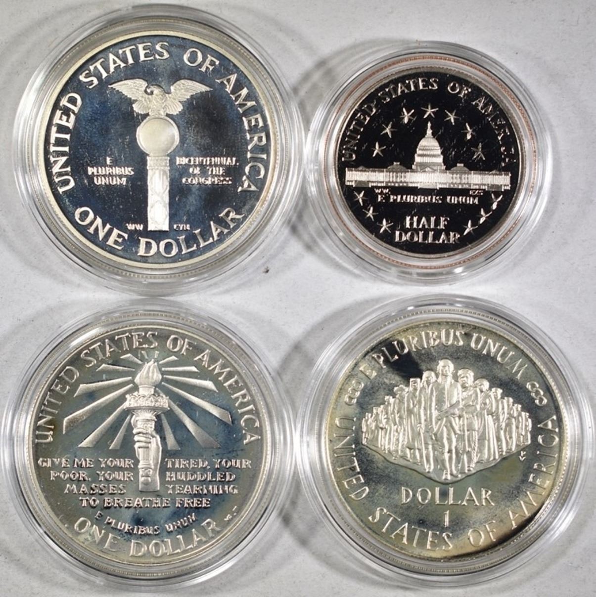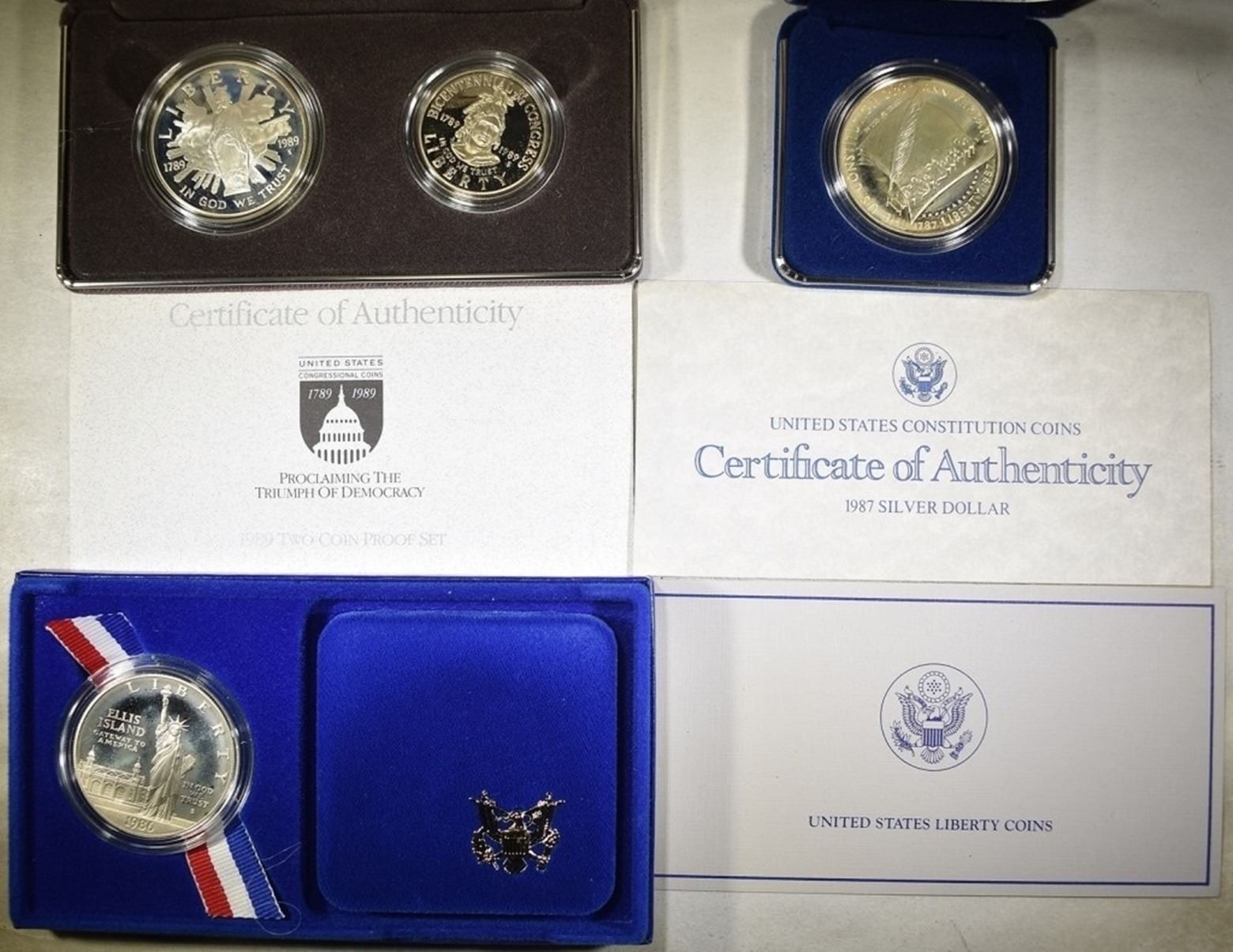 1987 CONSTITUTION SILVER DOLLAR, 1989 CONGRESSIOAN 2-COIN: SILVER DOLLAR & CLAD HALF DOLLAR & 1986 STATUE OF LIBERTY ESTIMATE $75 - $85.