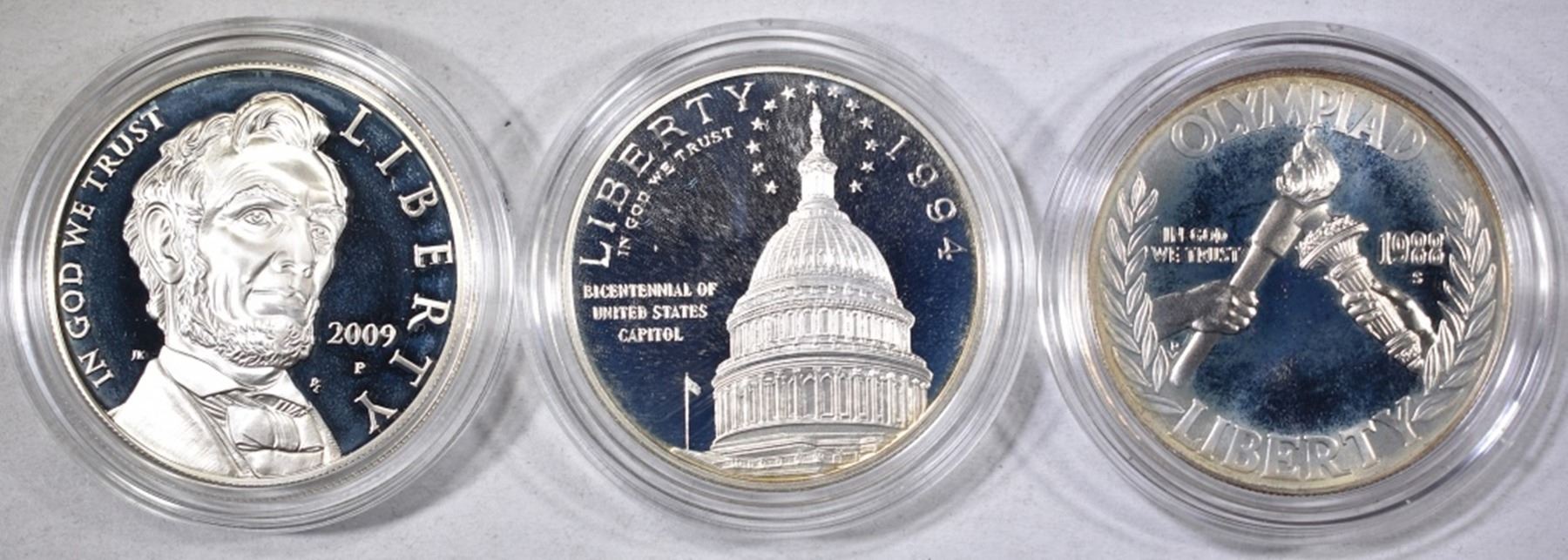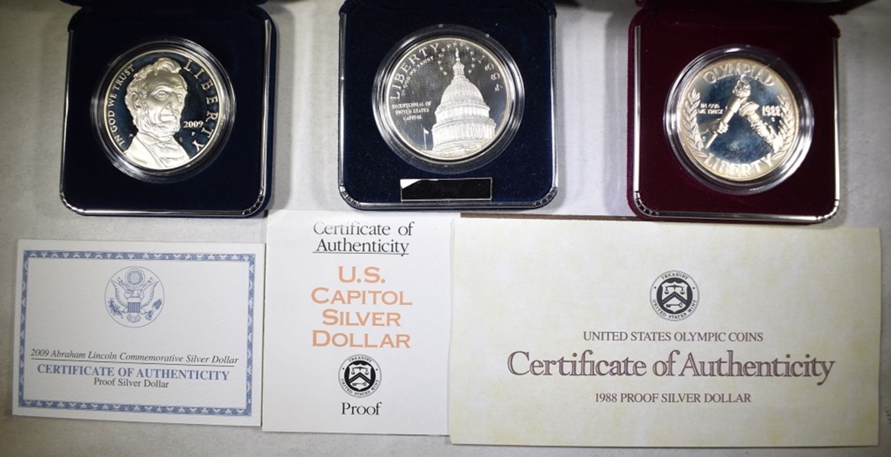 1988 OLYMPIC, 1994 U.S. CAPITOL & 2009 ABE LINCOLN ALL ORIG PACKAGING ESTIMATE $80 - $100.