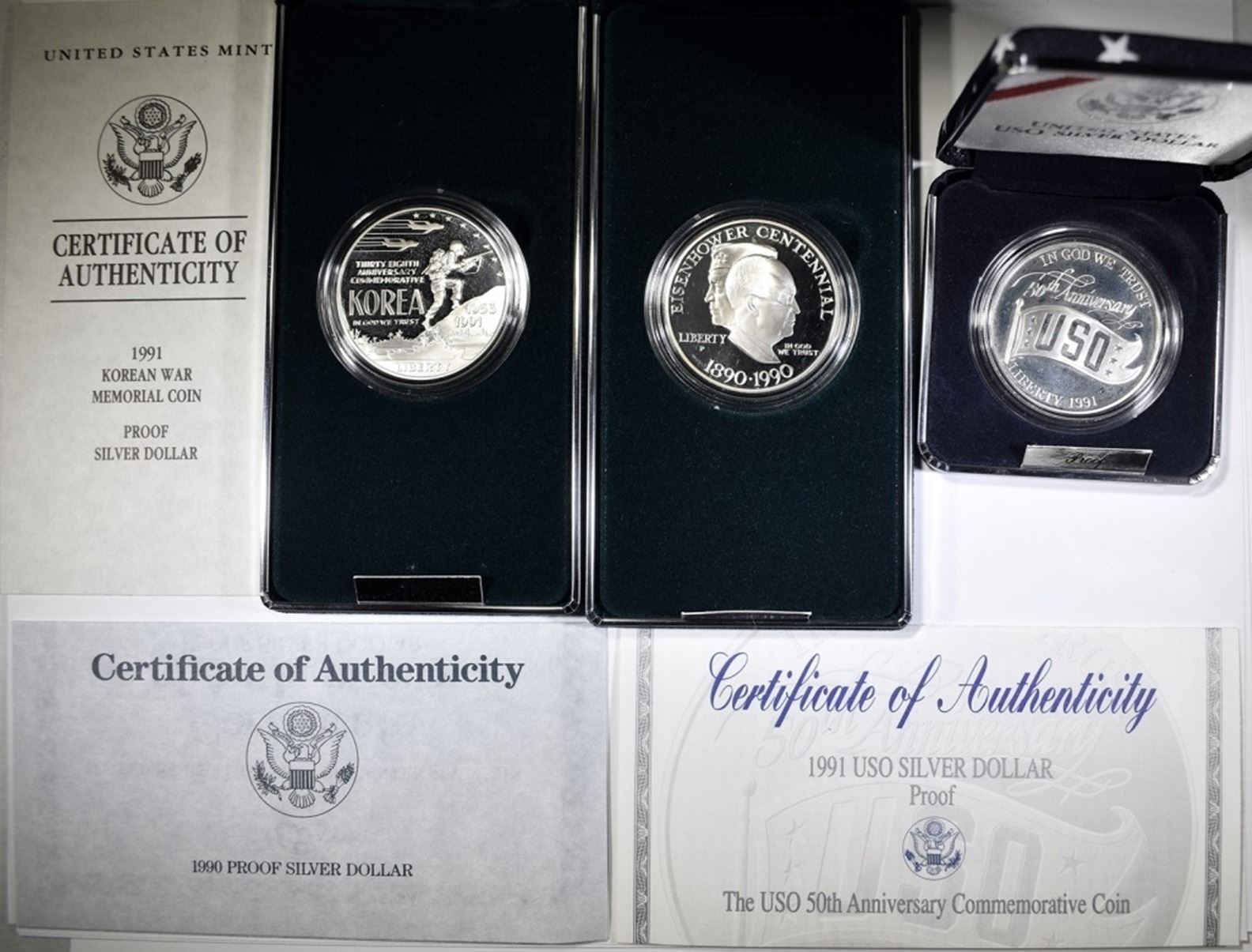 1990 EISENHOWER, 1991 USO & 1991 KOREAN WAR IN ORIG PACKAGING LOW COST FLAT RATE U.S. SHIPPING ESTIMATE $90 - $100.