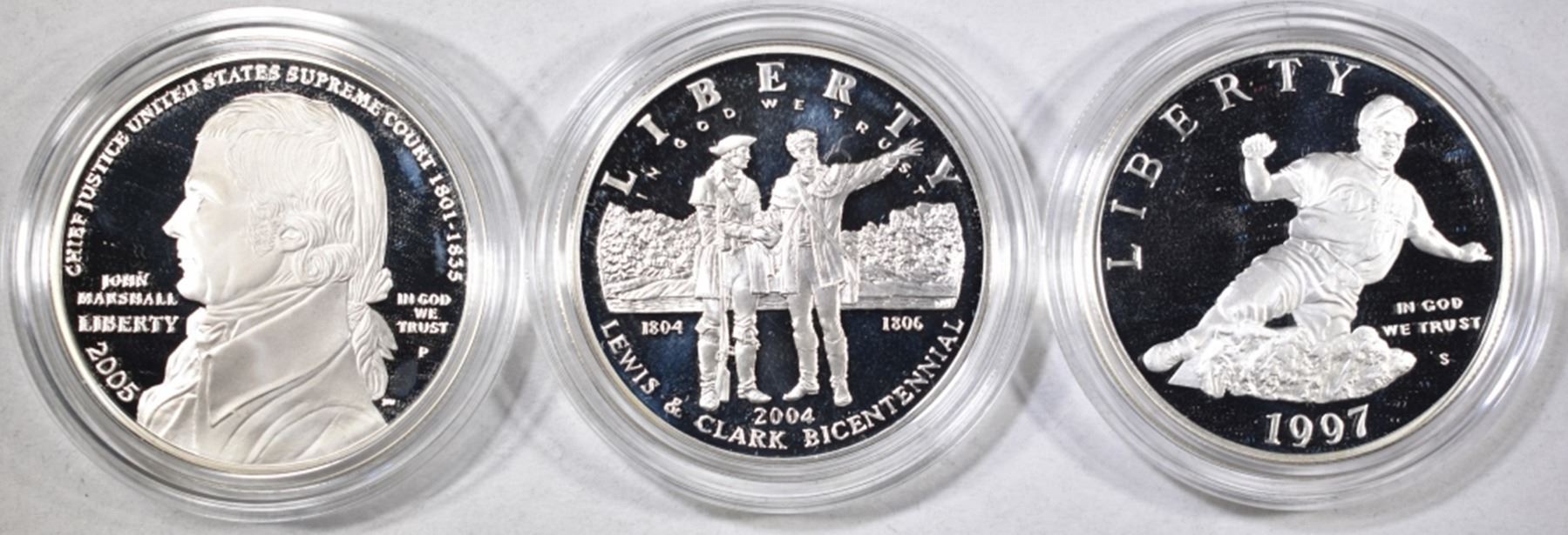 1997 JACKIE ROBINSON, 2004 LEWIS & CLARK, 2005 JOHN MARSHALL ORIG PACKAGING ESTIMATE $120 - $140.