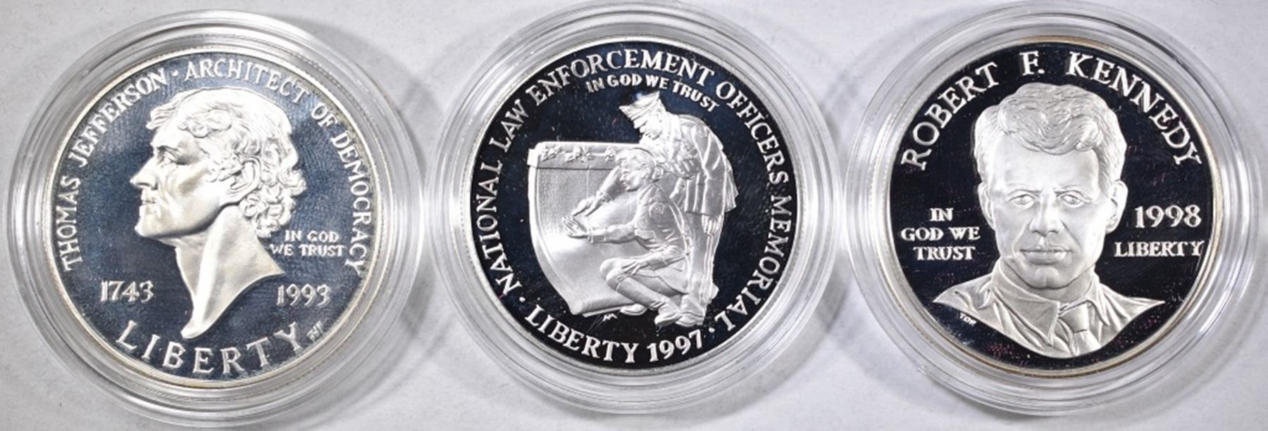 1993 JEFFERSON, 1997 LAW ENFORCEMENT & 1998 ROBERT F KENNEDY ORIG PACKAGING ESTIMATE $110 - $130.