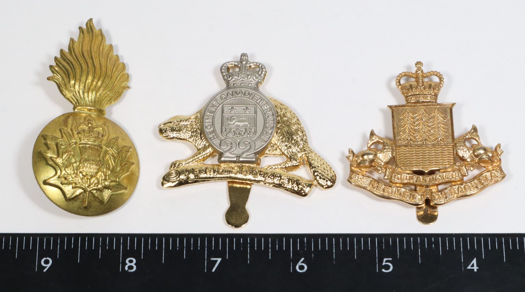 BADGE INSIGNIA CANADIAN MILITARY SOLD WITH 3 CANADIAN CAP BADGES LE REGIMENT DU SAGUENAY