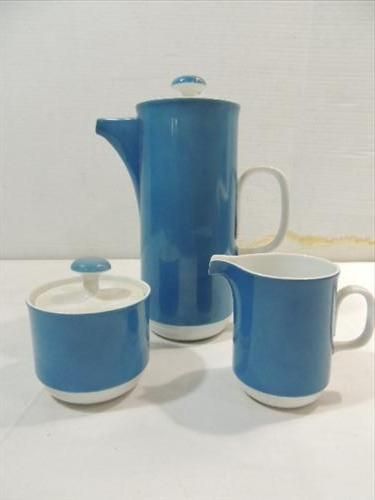 MODERN STYLE CERAMIC AQUARIUS SANGO COFFEE POT, SUGAR & CREAMER. NO ISSUES. AS SHOWN. VIEW PICTURE FOR DETAIL.