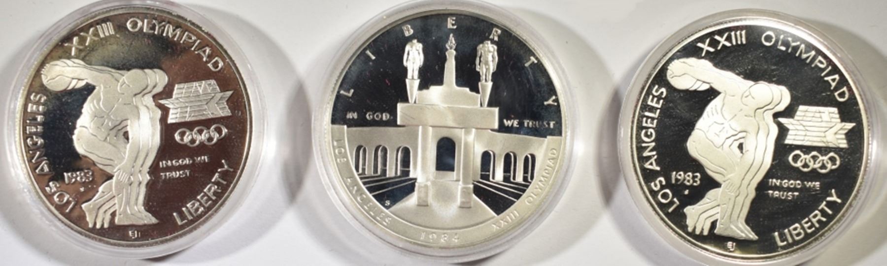 1983-S PROOF OLYMPIC DOLLAR & 1983-84 OLYMPIC 2-COIN PROOF SET BOTH IN ORIGINAL PACKAGING ESTIMATE $100 - $110.