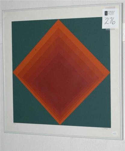 MODERNIST LITHOGRAPH, pencil signed L. Domberger, 25"x25", dated 1970, SHIPPING: See recommended third party shippers. This item can't be packed or shipped by seller.