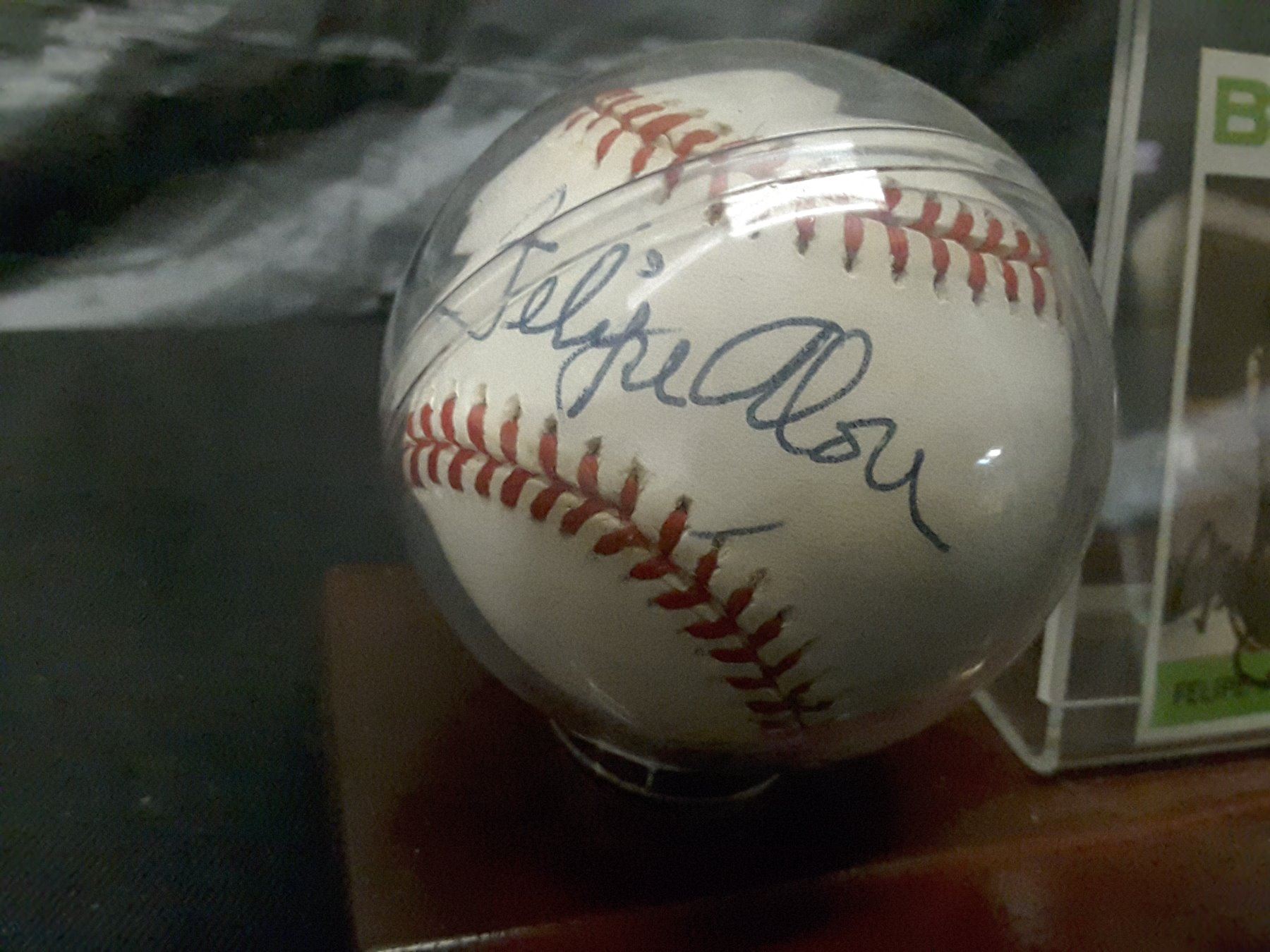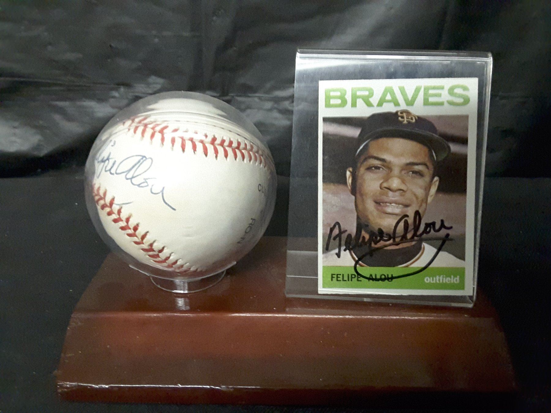 MOISES ALOU AUTOGRAPHED BALL AND CARD DISPLAY