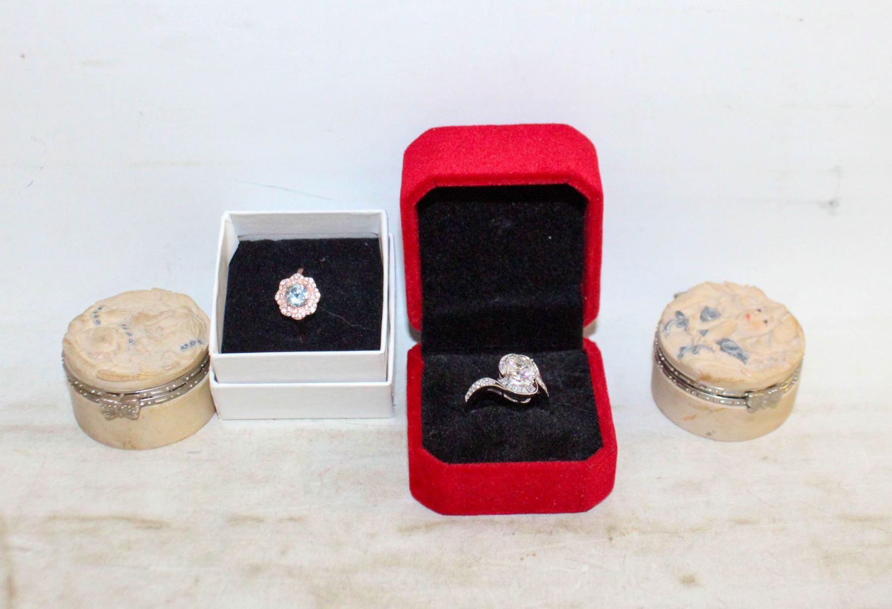 SCRAP 925 CHAIN (BROKEN) + 2 SMALL RELIGIOUS THEMED MINI LIDDED RING DISHES