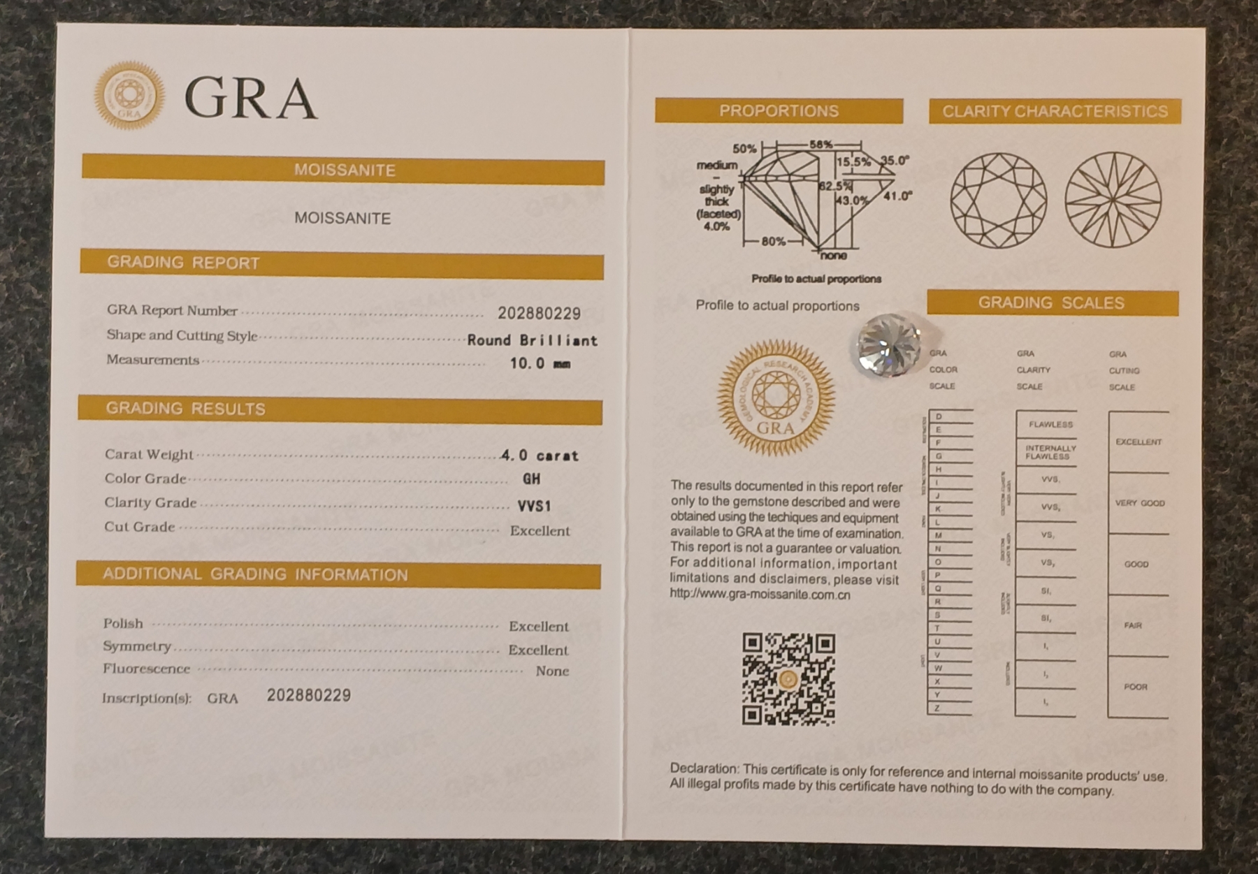 NOTE: 4.0CT STONE - DIAMOND TESTER POSITIVE - INCL REPORT