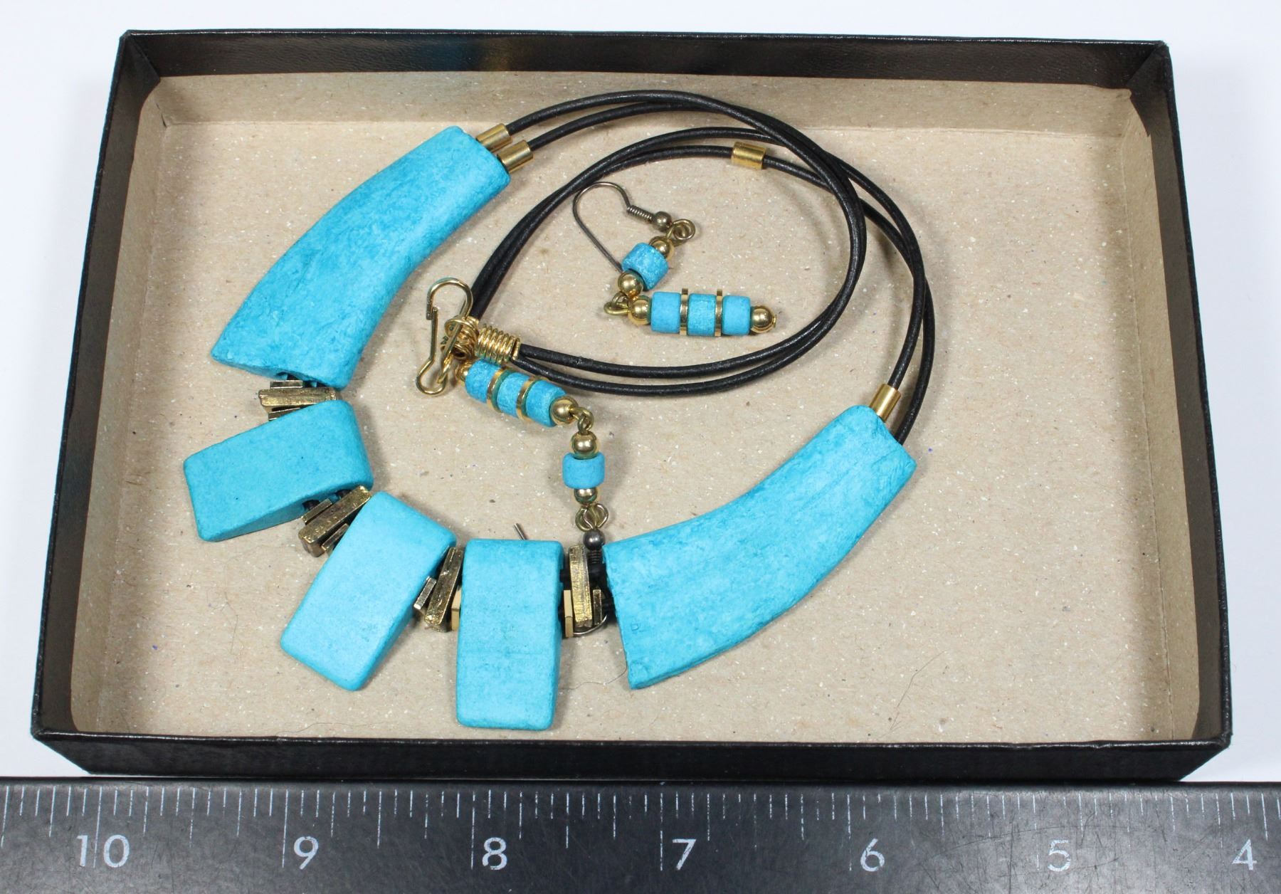 MOLDED TURQUOISE NECKLACE & EARRINGS