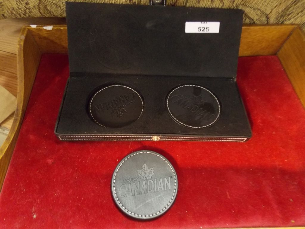 MOLSON CANADIAN LEATHER COASTERS IN CASE