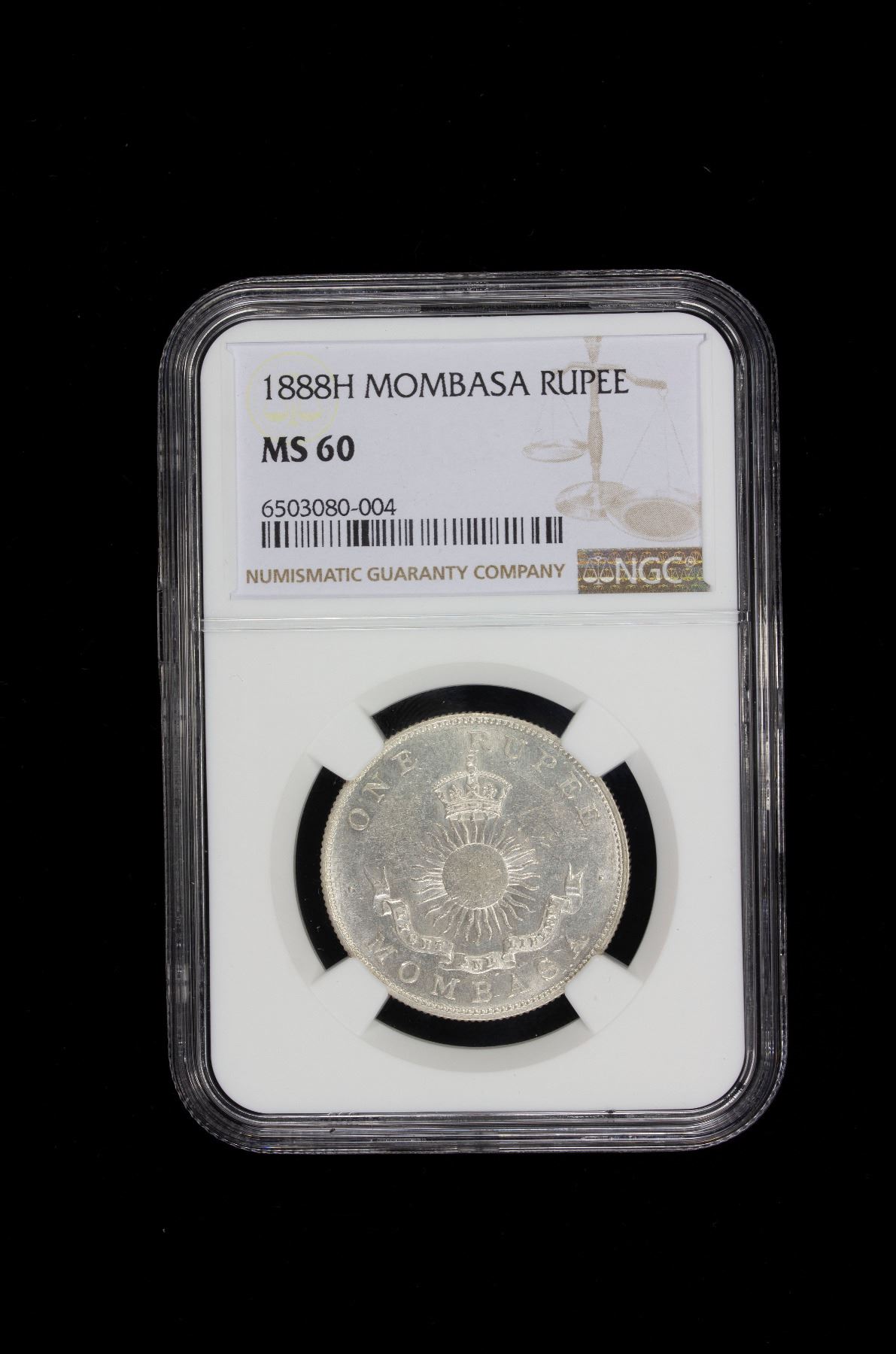 MOMBASA: Victoria, 1888-1896, AR rupee, 1888-H, NGC MS60