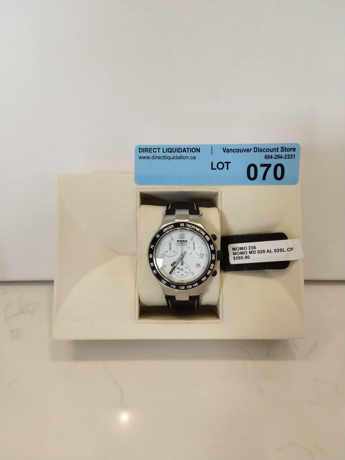 NEW WITH TAGs. MADE IN ITALY. WATER RESISTANT. CHRONO SWISS MOVEMENT. RETAIL - $595 MOMO DESIGN, with its Italian roots firmly planted in racecar accessories, turns watches into a modernized menu of high-tech components. Big, masculine-oriented models are even better with automatic Swiss-made movement