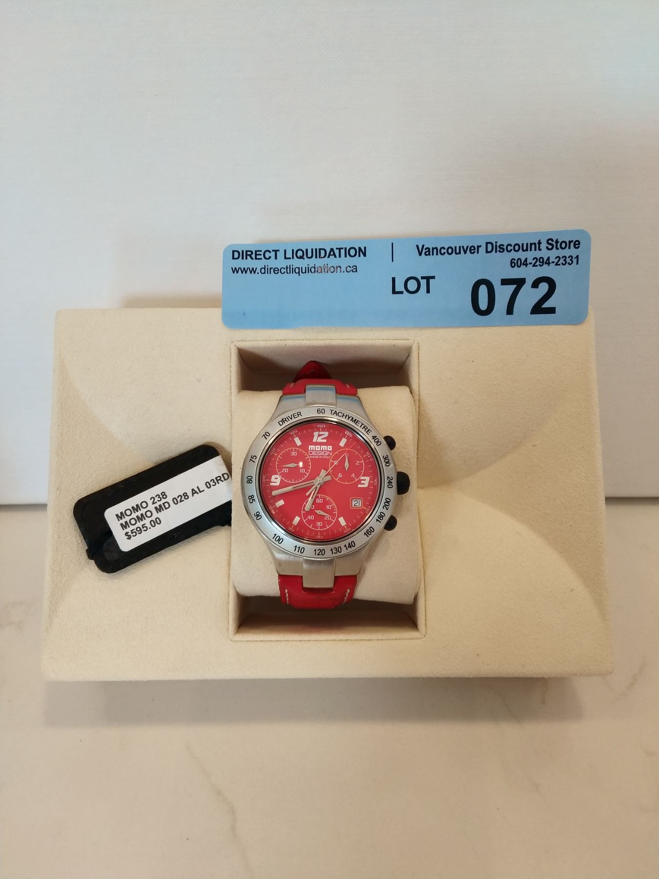NEW WITH TAGS. MADE IN ITALY. WATER RESISTANT. CHRONO SWISS MOVEMENT. RETAIL - $595 MOMO DESIGN, with its Italian roots firmly planted in racecar accessories, turns watches into a modernized menu of high-tech components. Big, masculine-oriented models are even better with automatic Swiss-made movement